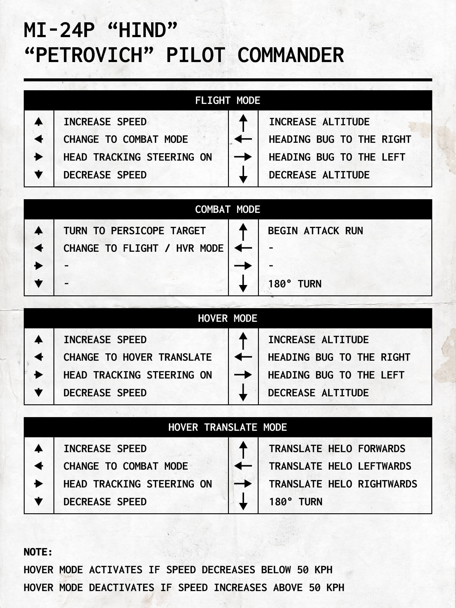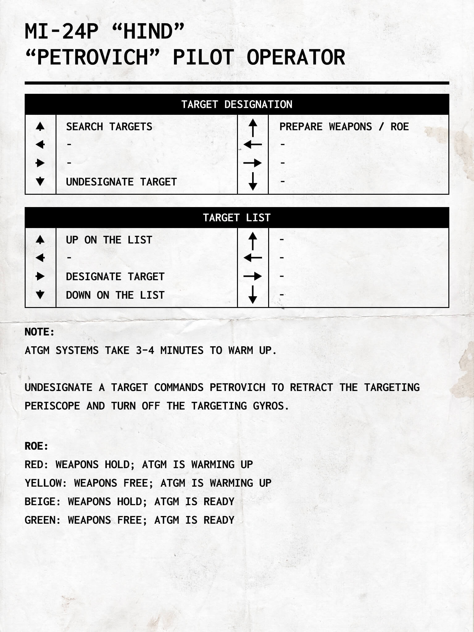 Mi-24P "Petrovich" Kneeboard Cheatsheets