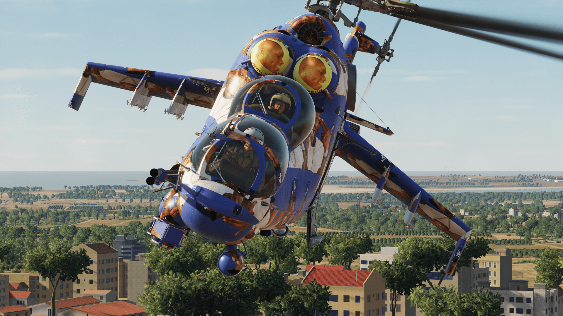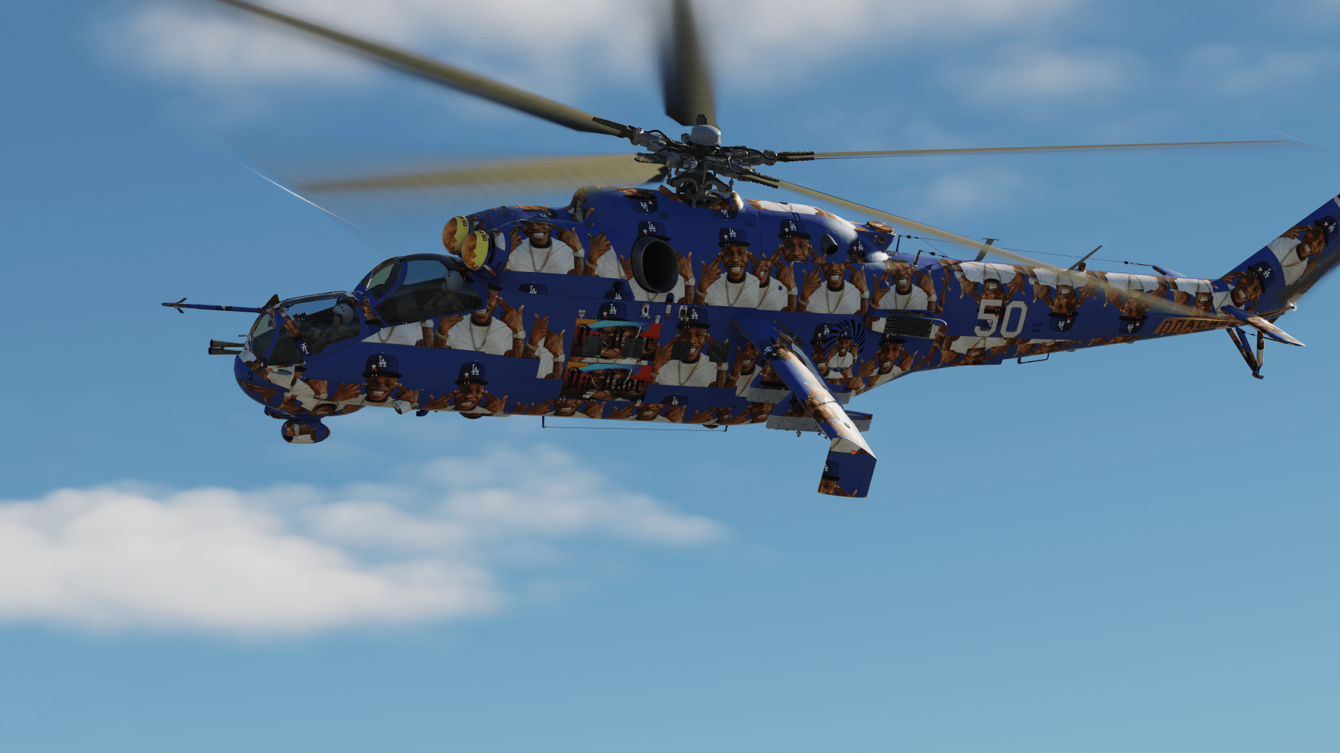 From the creators of the "lesss gooo" skin for the f16, f18 and the f14 comes the brand spankin new Mi-24P Hind livery