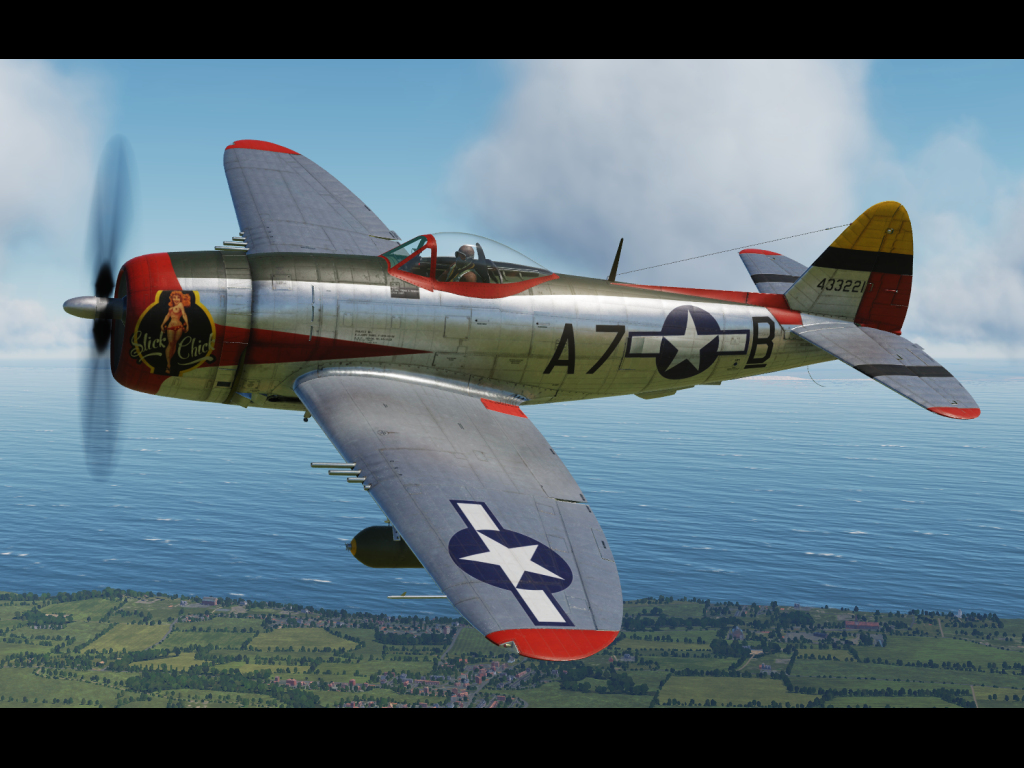 "Slick Chick" was a P-47D-30-RA flown by Colonel Frank Perogo, C.O. of the 368th Fighter Group, 9th Air Force.