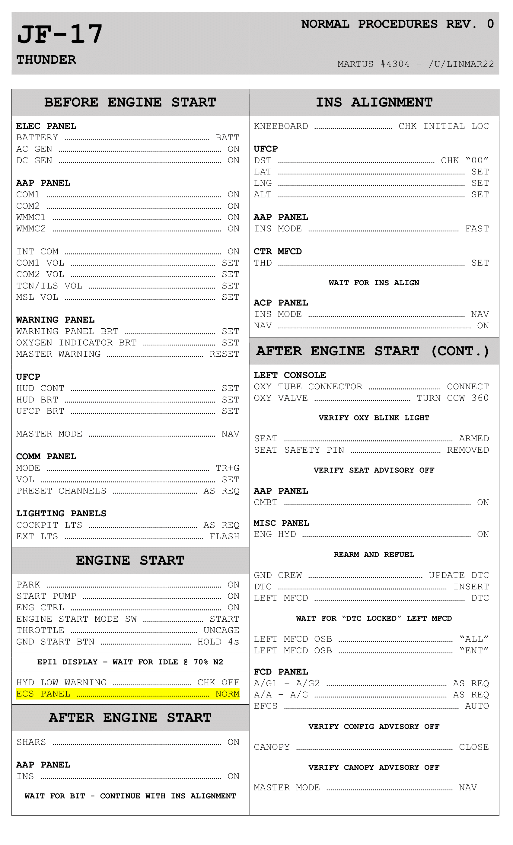 JF-17 Normal procedure checklists (4k)