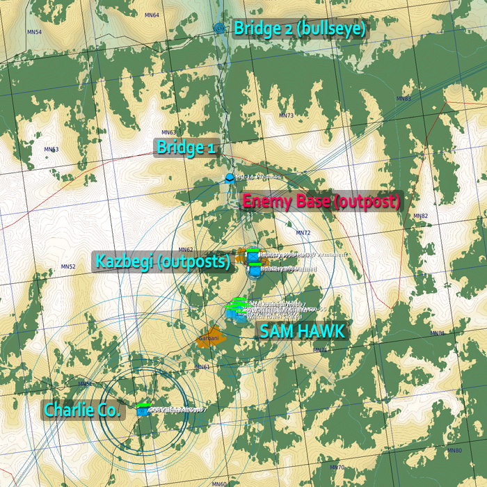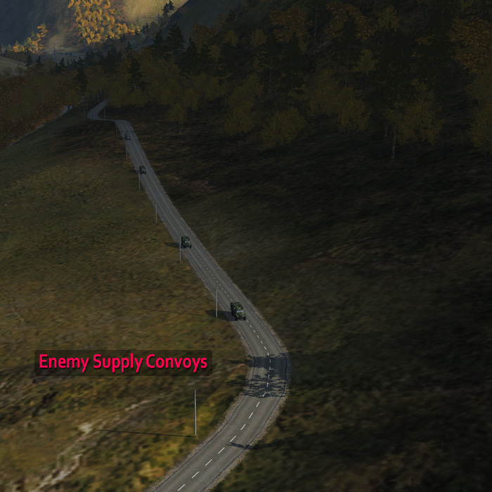 The Russians are trying to overrun our outpost at Kazbegi. They are currently bringing troops in as fast as they can to reinforce the attack. These convoys are traveling up and down the valley north of Kazbegi. The men stationed in Kazbegi are under attack and are in need of air support as well. Every time an enemy convoy arrives at the drop-off point just north of Kazbegi, they deliver more men to the battlefield from the north. These forces are sneaking through the mountains flanking our forces on the ground and preparing for an all out attack. Friendly reinforcements are heading to Kazbegi as fast as they can from Nigniy Pasanauri but it will take them some time to get there, Keep the men in Kazbegi alive till they do.