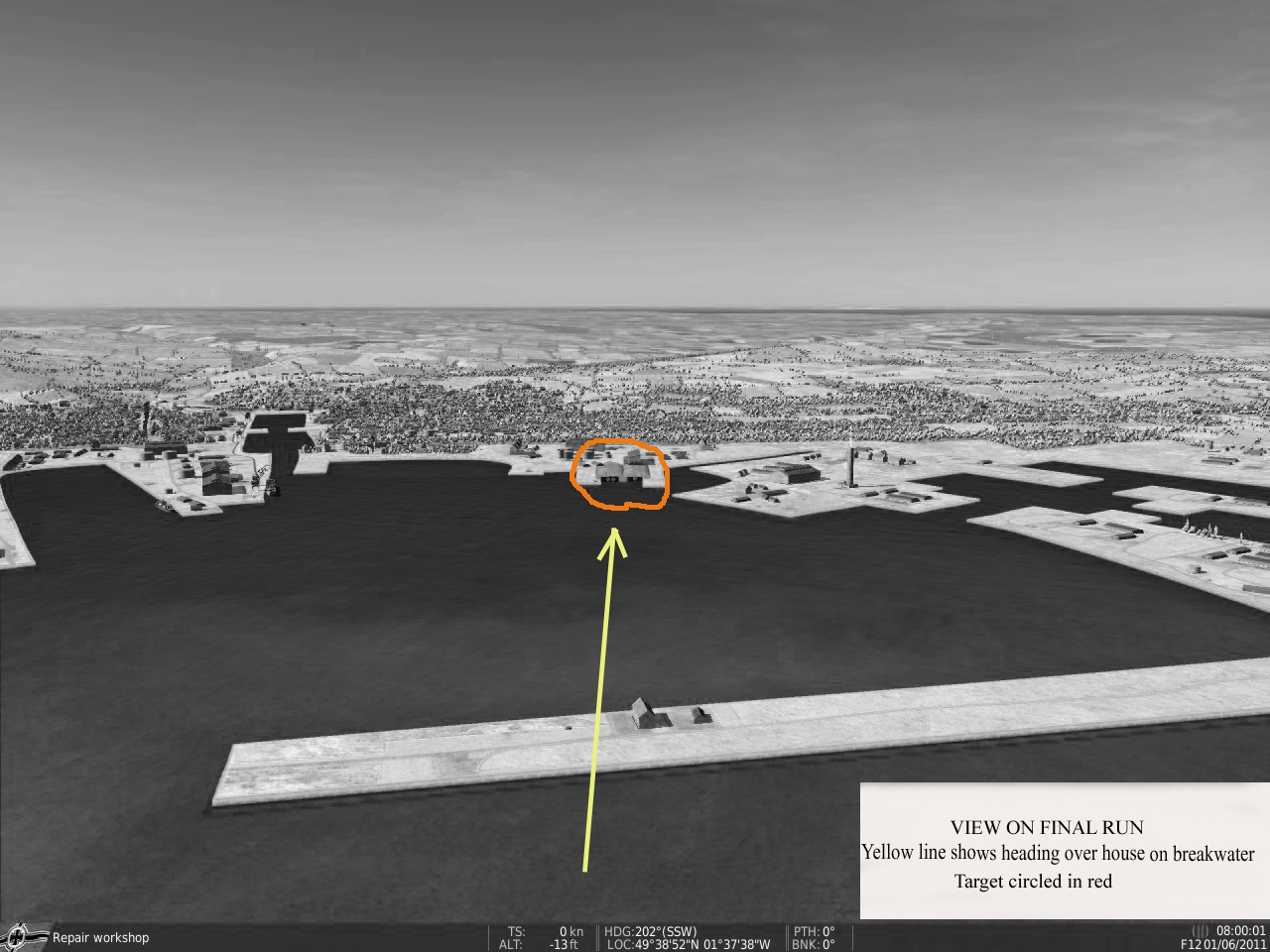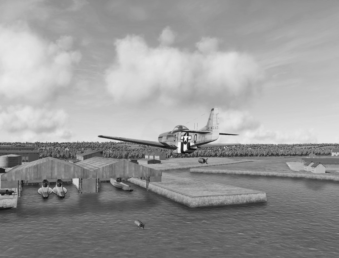 A brief high precision low level bombing of submarine pens at Cherbourg just before D-Day.