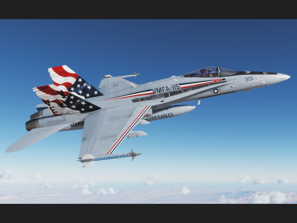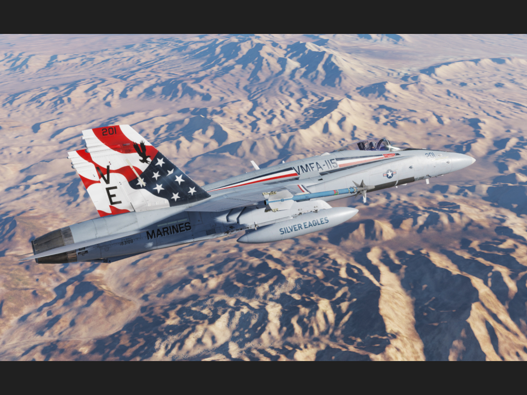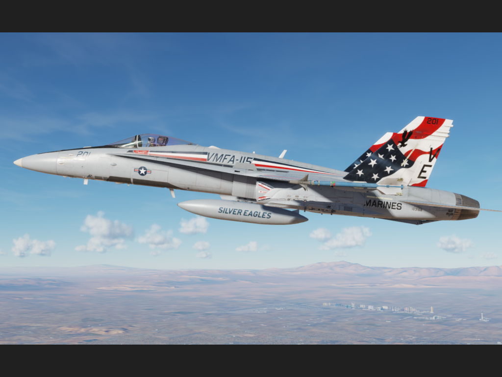 This was an F/A-18A++ assigned to the CAG of VMFA-115 USMC, "The Silver Eagles", Lt Col L.G. Patrick, operating out of MCAS Beaufort, South Carolina.