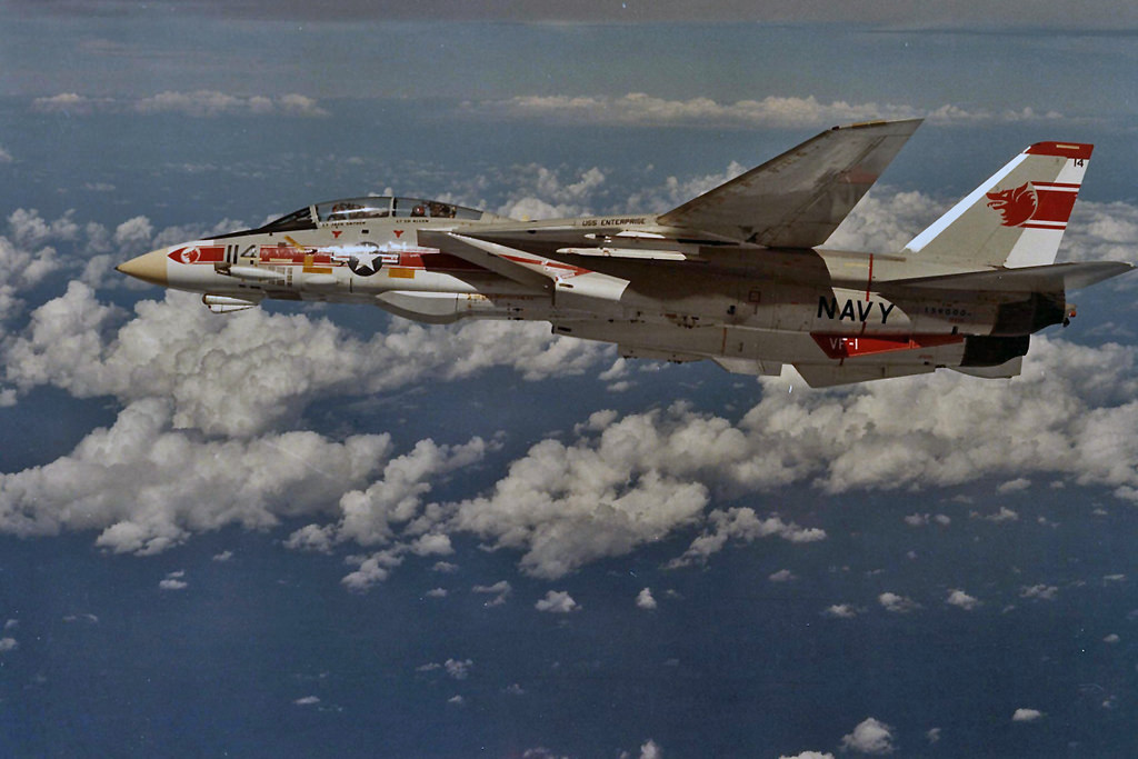 A livery adaptation of the very first F-14 Tomcat squadron, Fighter Squadron One (VF-1) 'Wolfpack' deployed with Carrier Air Wing Fourteen (CVW-14) during the final days of the Vietnam War