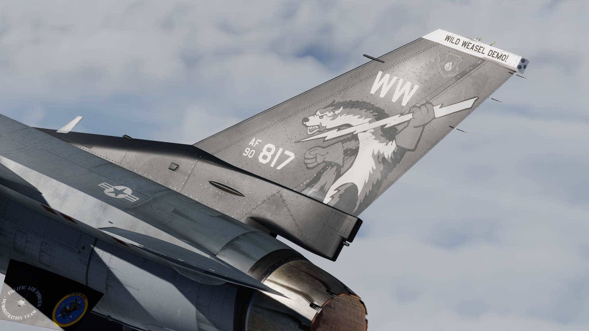 This is a highly accurate representation of 90-0817, sporting the great Wild Weasel tail made for the PACAF demo team. Included are a custom helmet, gloves and patches to represent the team!