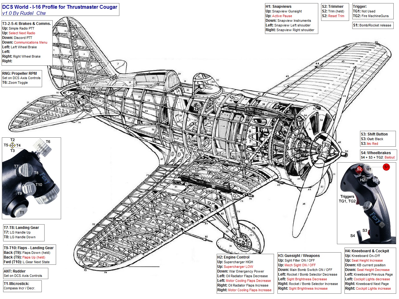 ThrustMaster Cougar Profile for DCS World I-16, for use with the TM Foxy software, that is needed to download it into the Cougar's memory.