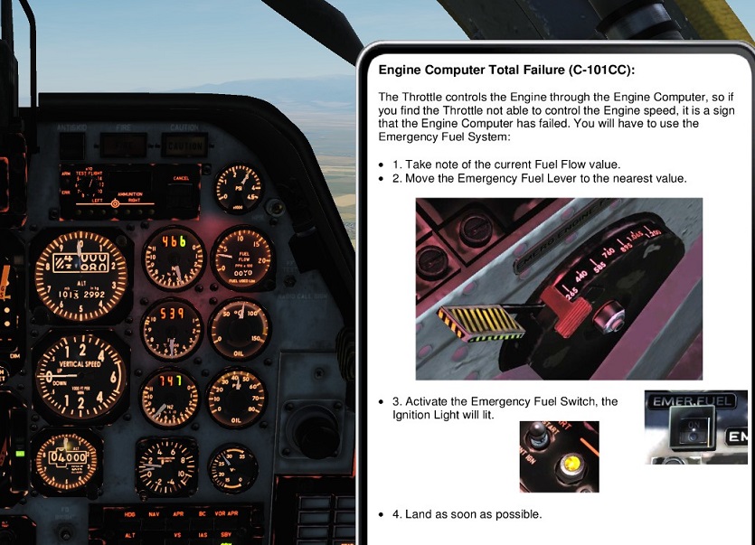 I've written a Kneeboard-size version of the C-101 Emergency Procedures, summarized from several sources: The Flight Manual of a real C-101EB, the DCS Manual of the C-101CC and Information from ED's Forum. It's on PDF format, use the Kneeboard Utility to place it onto the aircraft's kneeboard. Tough very similar, there is one PDF for the EB version and a separate one for the CC version.