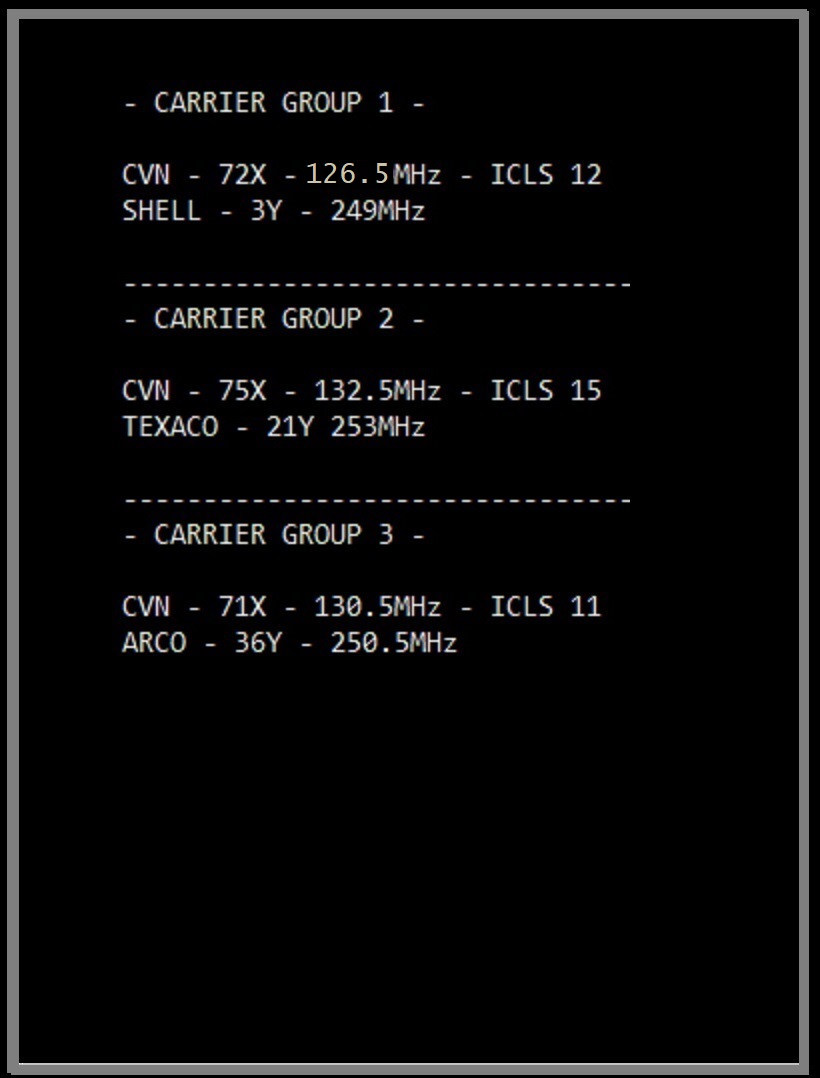 If you're not familiar with CASE III procedures, I recommend to use "Supercarrier Reference Kneeboards" by GTFreeFlyer (also here in the user files section)