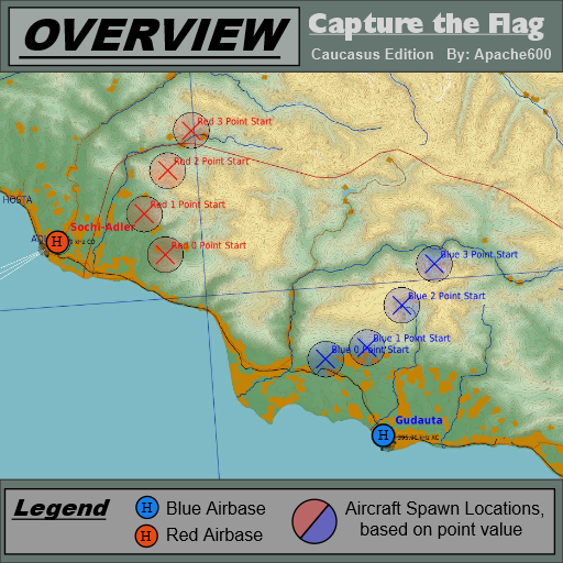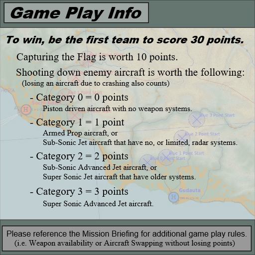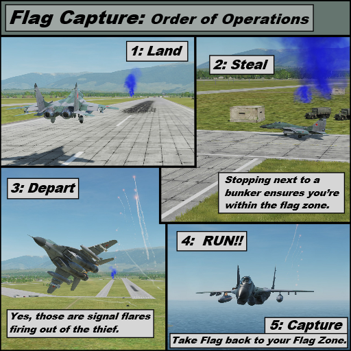 - Capturing the flag is worth 10 points (if you capture it, the flag resets and you can capture it again)  The Flag is the colored smoke at the enemy airport.