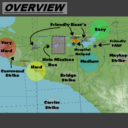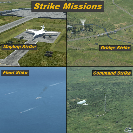 The basis of this mission is such that you start on the ramp in the Krasnodar area. And depending on the direction you fly, you activate different levels of difficulty. Each individual level/area then has 4 different missions inside of it that it randomly selects from. They each contain 30+ ground units, ranging from lightly unarmed vehicles to tanks, and a few hardened structures, and some AAA/SAMs in the harder sectors.
