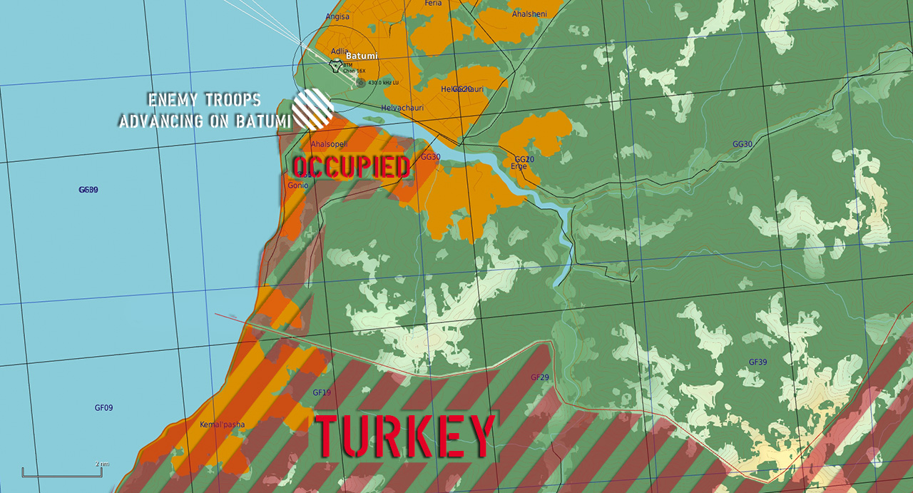 My 6th mission for the Gazelle continues the storyline of my Operation: "Muzzlebrake" and Operation: "Golden Retriever". It is embedded in a fictional Turkish-Georgian conflict and requires you to slow down the Turkish advance on Batumi airport, untill Georgian reinforcements become available.