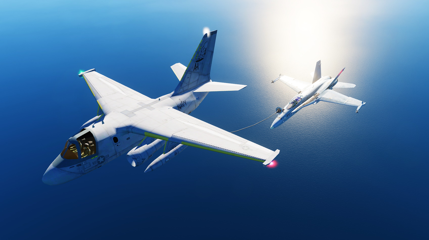 Practice carrier takeoffs, landings and A2A refueling.  F-18C / F-14B / A-4 / UH-60L