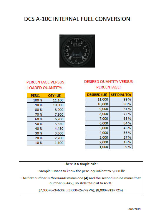 A-10C fuel conversion (percentage to pounds and viceversa)