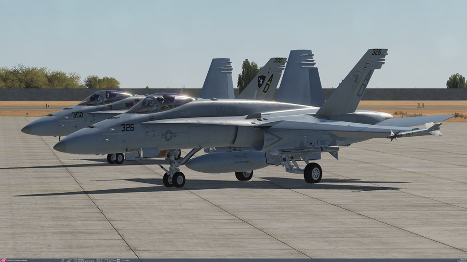 This pack represents the squadron in 1996 wearing lo-vis paint. It also includes the squadron in 1997 liveries with hi-vis CAG and XO birds after the squadron moved to Beaufort, SC. The tail code was then changed to BM (Beaufort Marines) by the then commanding officer.