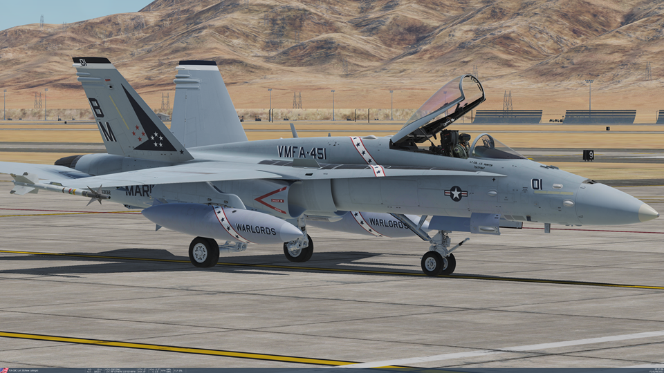 This pack represents the VMFA-451 Warlords when they were deployed to Desert Storm in 1991 wearing lo-vis paint. It also includes the squadron in post Desert Storm 1993 liveries with hi-vis CAG and XO birds.