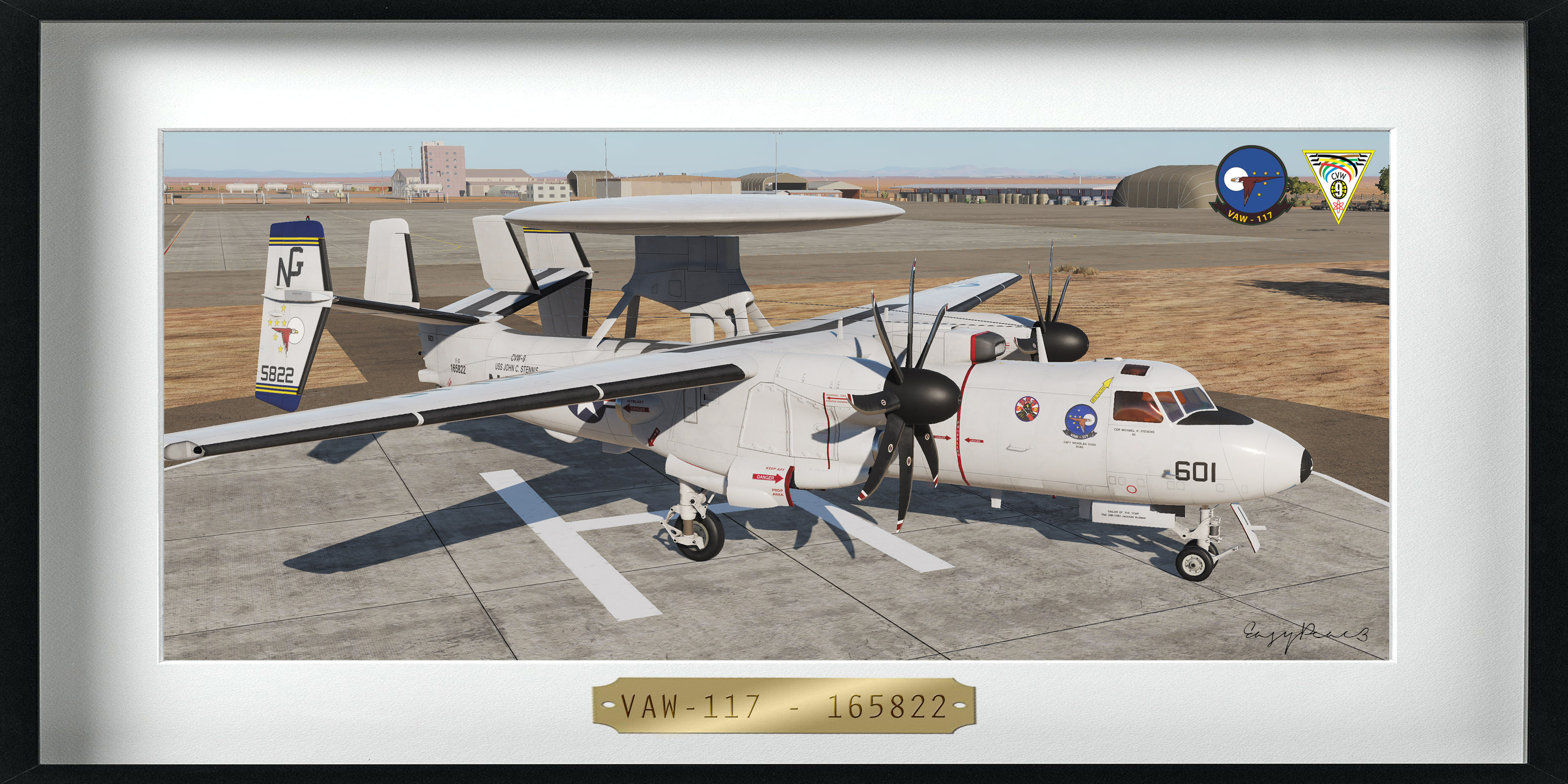 This is a skin of an E-2 Hawkeye of the VAW-117 "The Wallbangers".