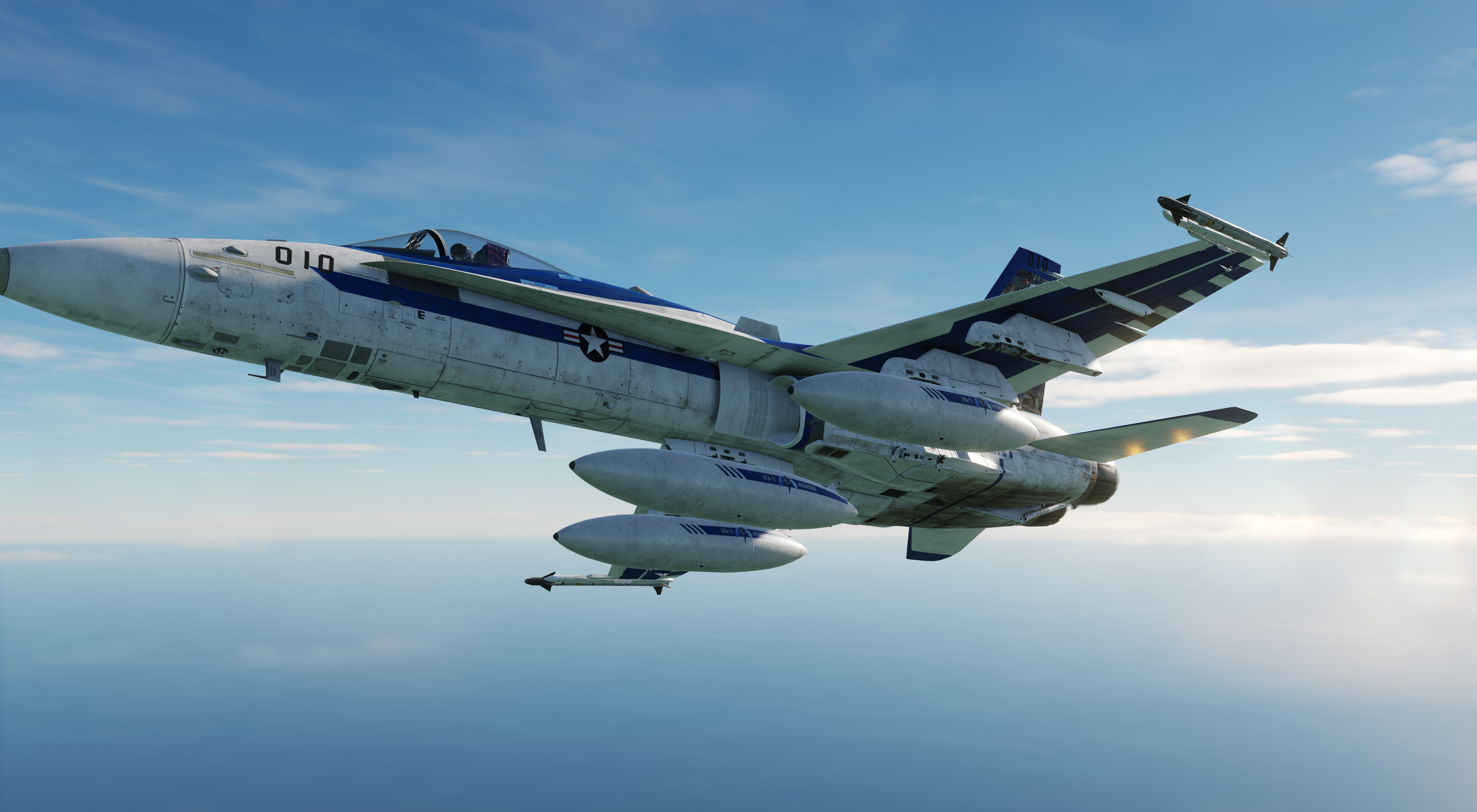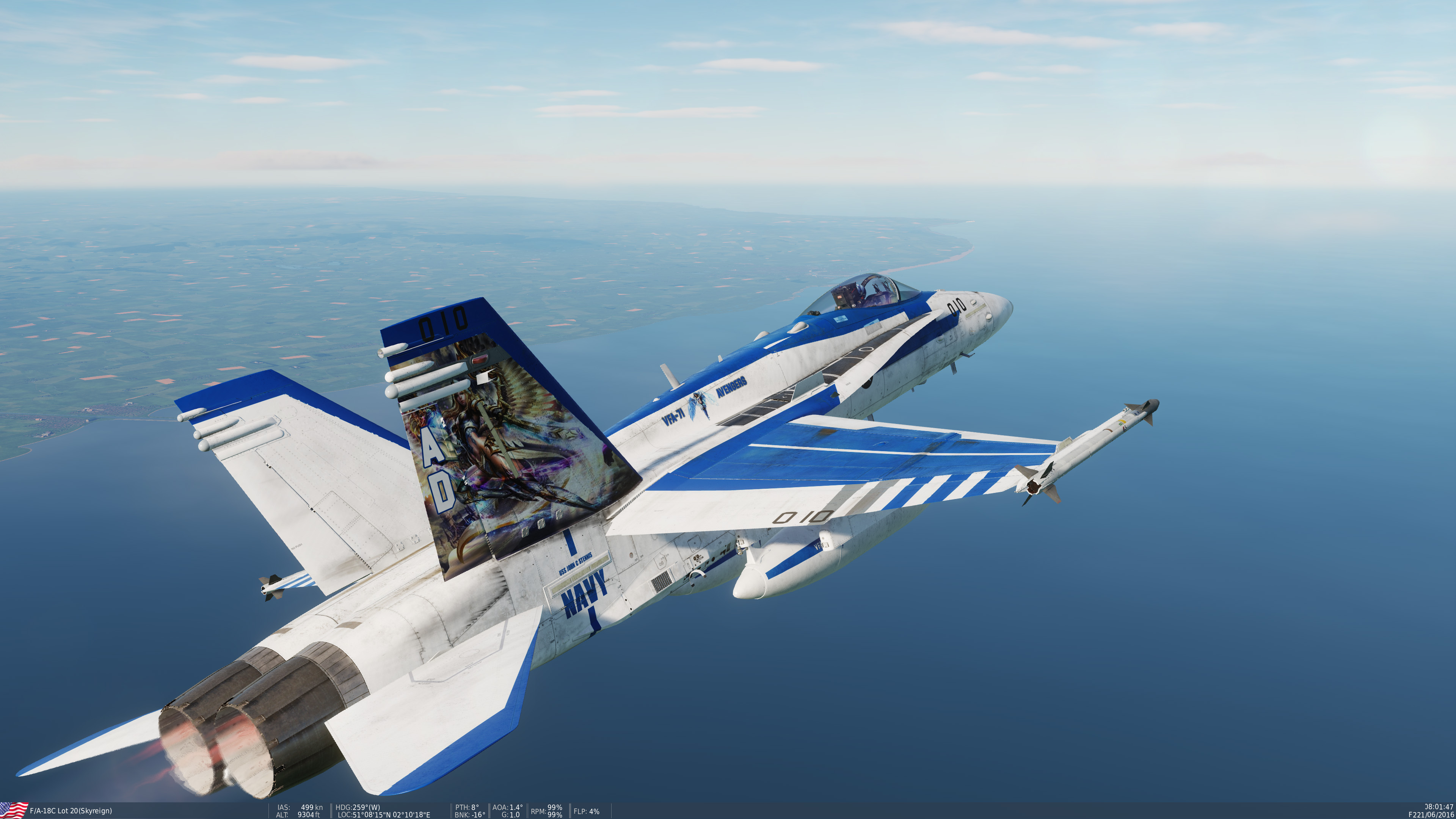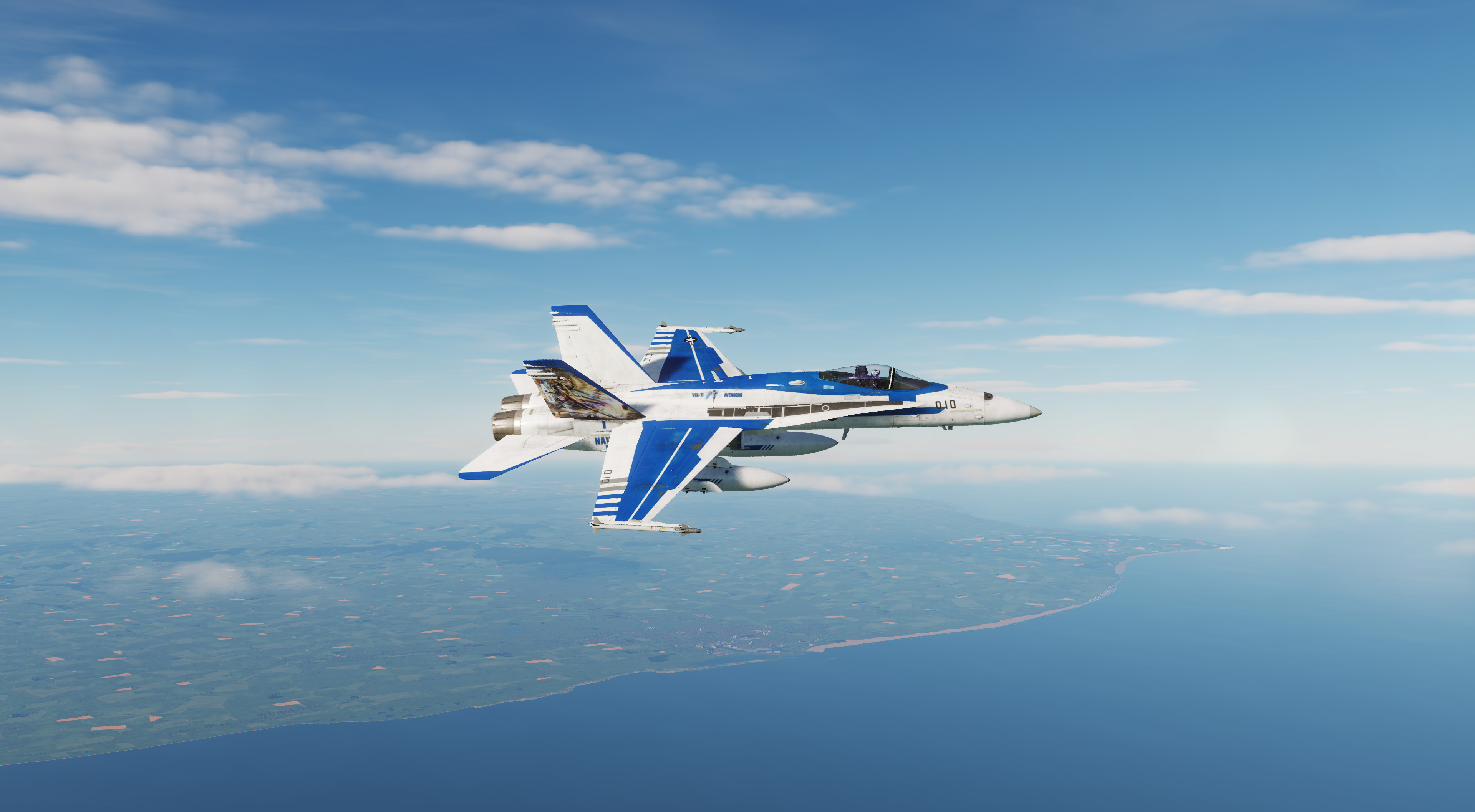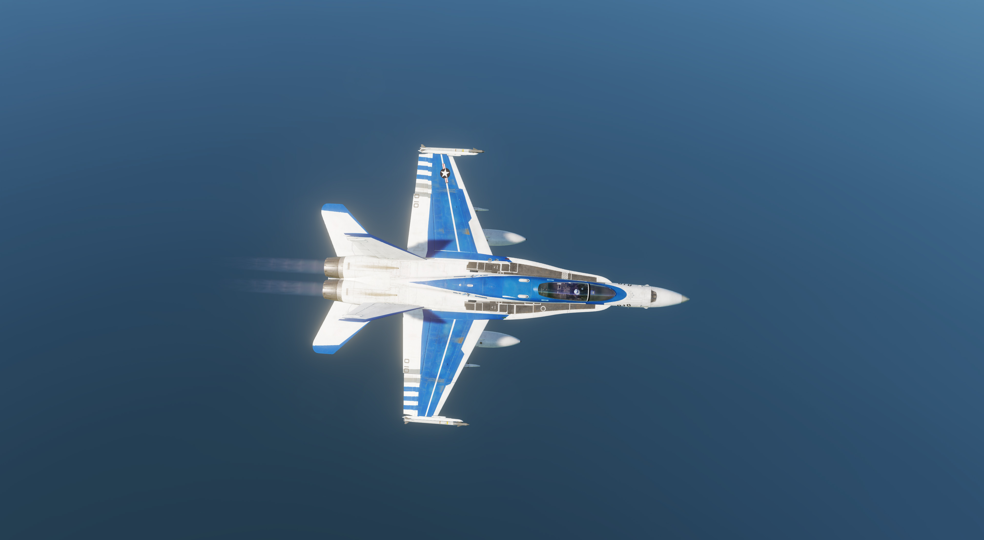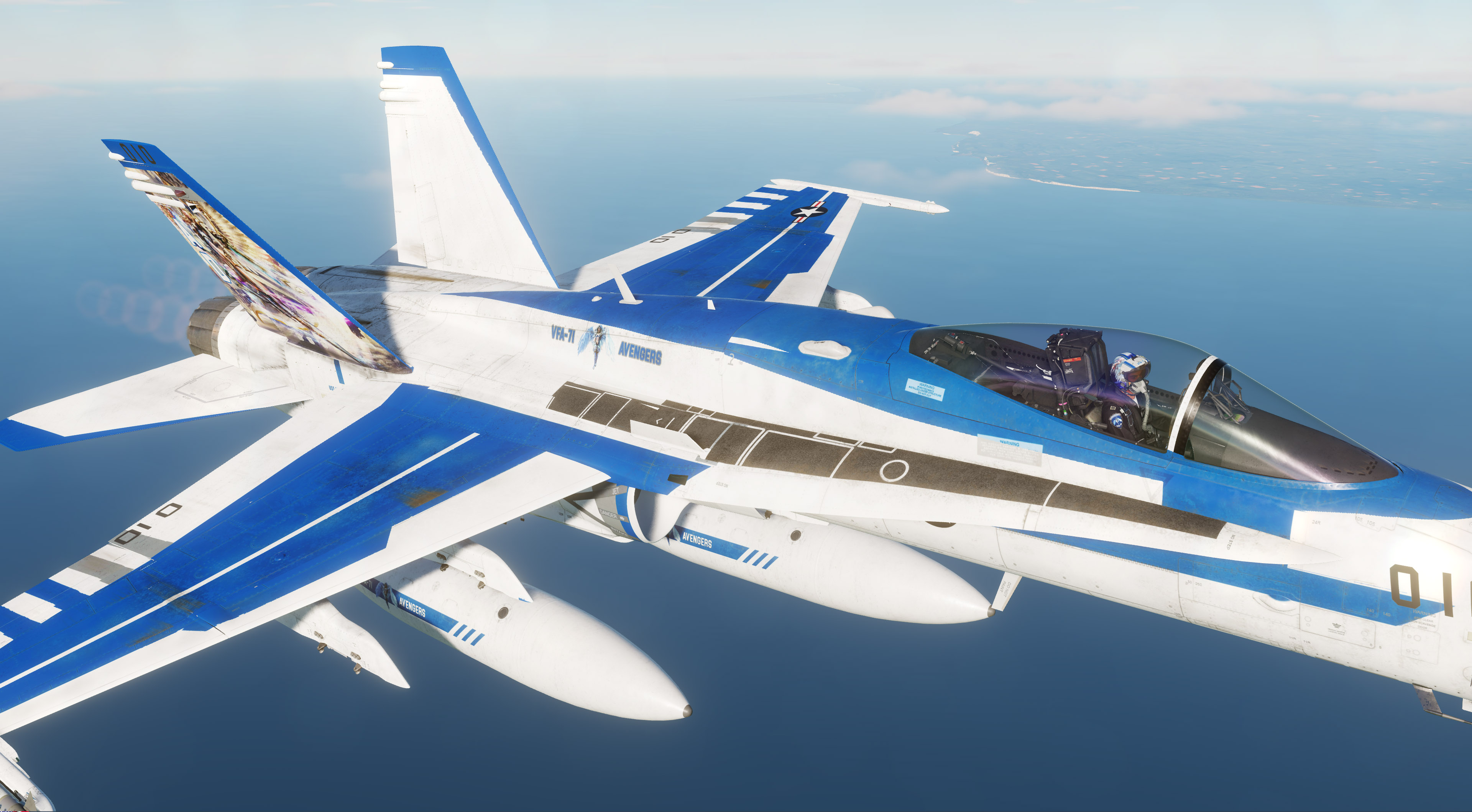 For my first F/A-18C Hornet skin I present the USN VFA-82 Freedom Fighters. A fictional livery I created. Took a long time to line up all the lines and graphics just (not perfectly) right. There may still be some imperfections, but not really noticeable in flight.