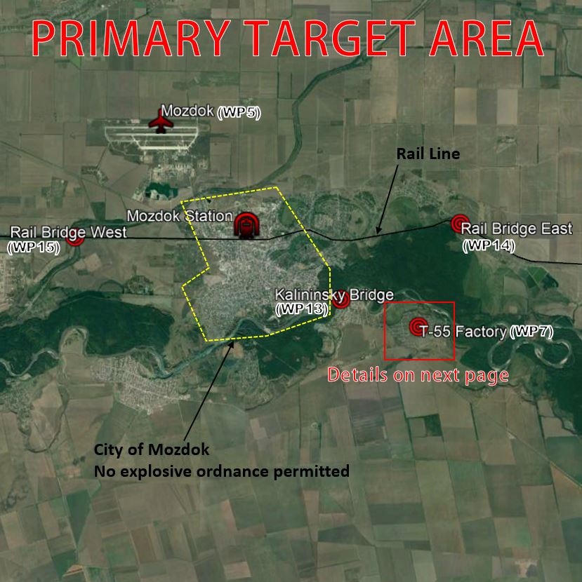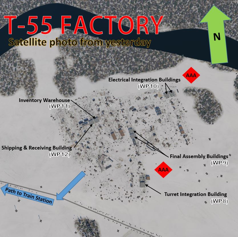 Intel reports show that the stockpile of T-55's are due to ship this morning via railway.  There is a rail station in Mozdok just 4 miles NW of the T-55 factory, which is pretty much a small town of its own.