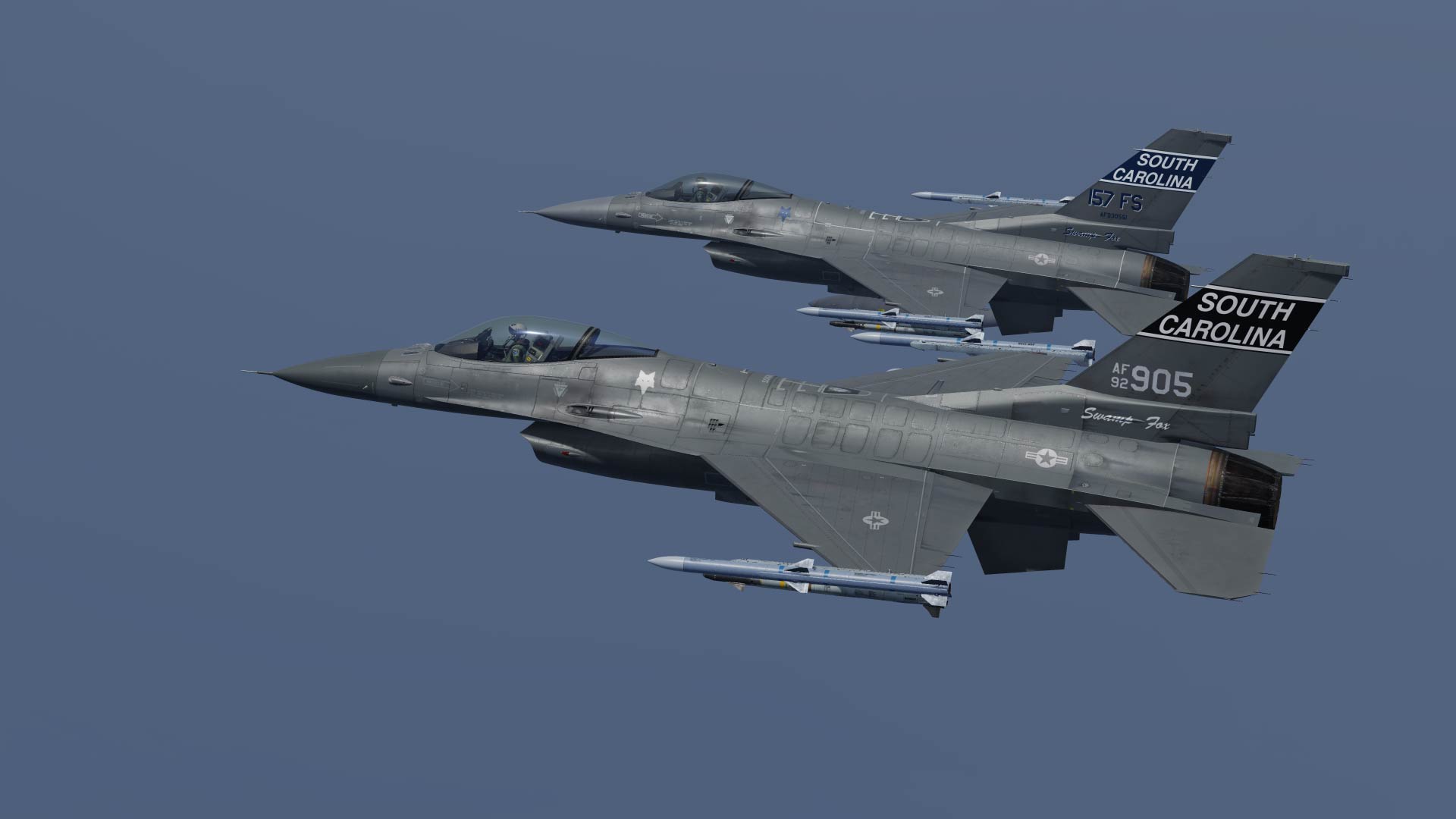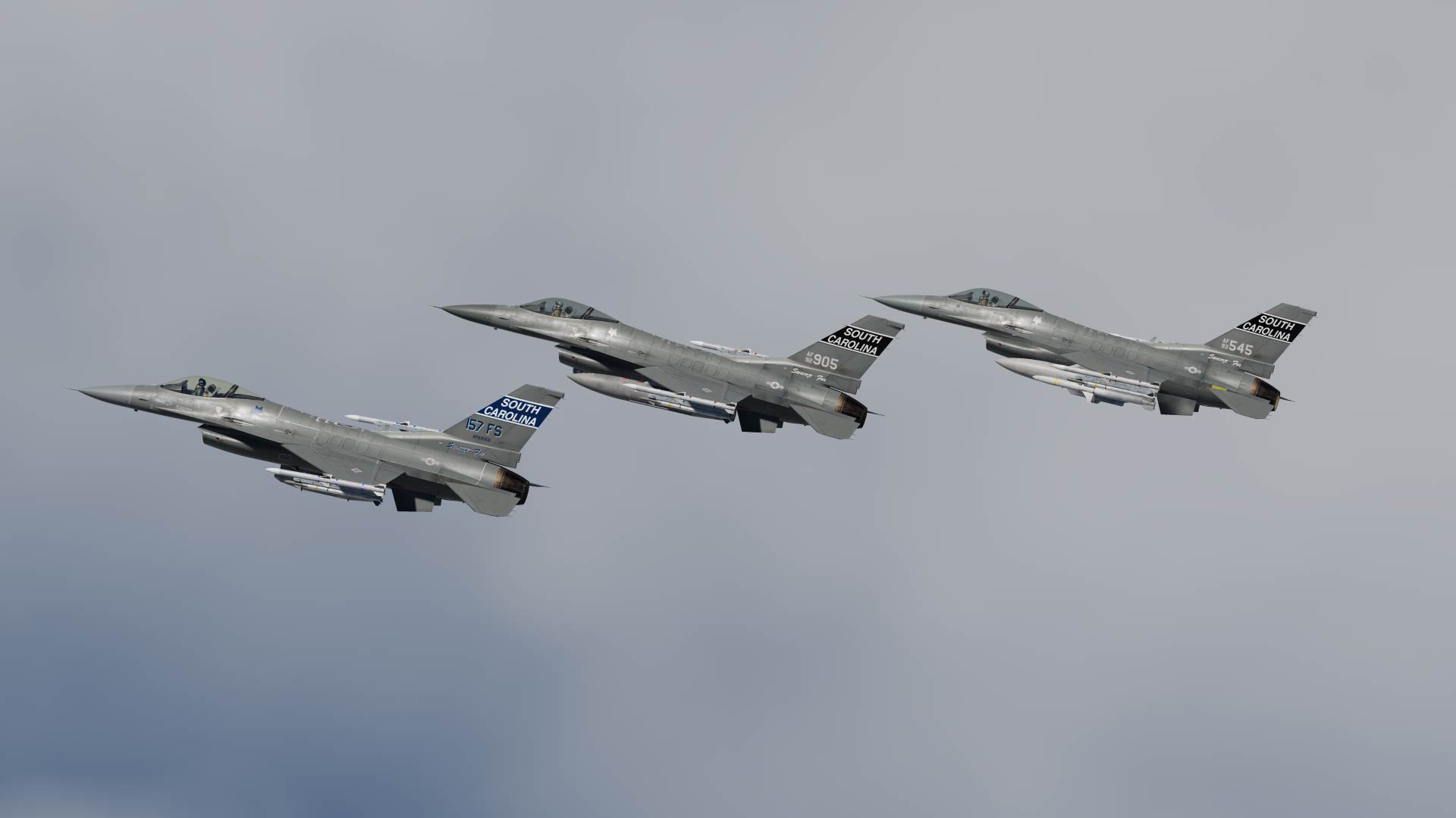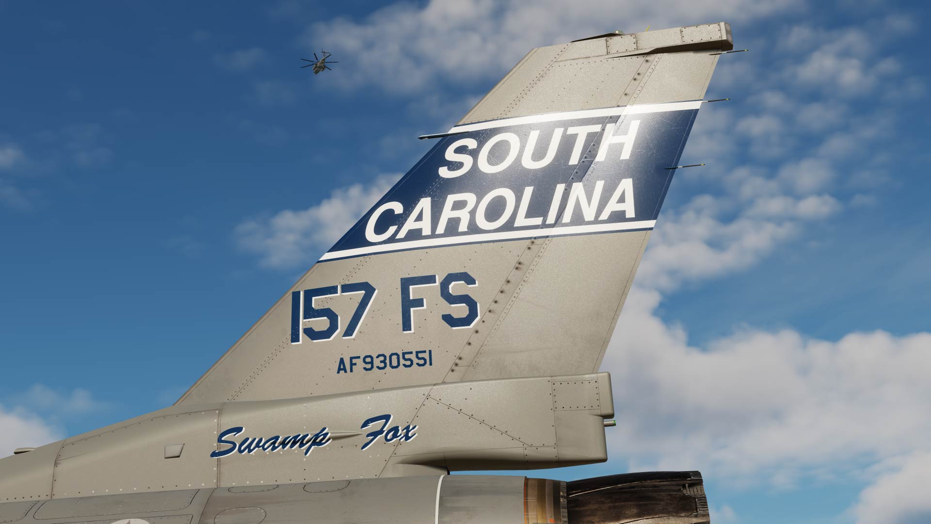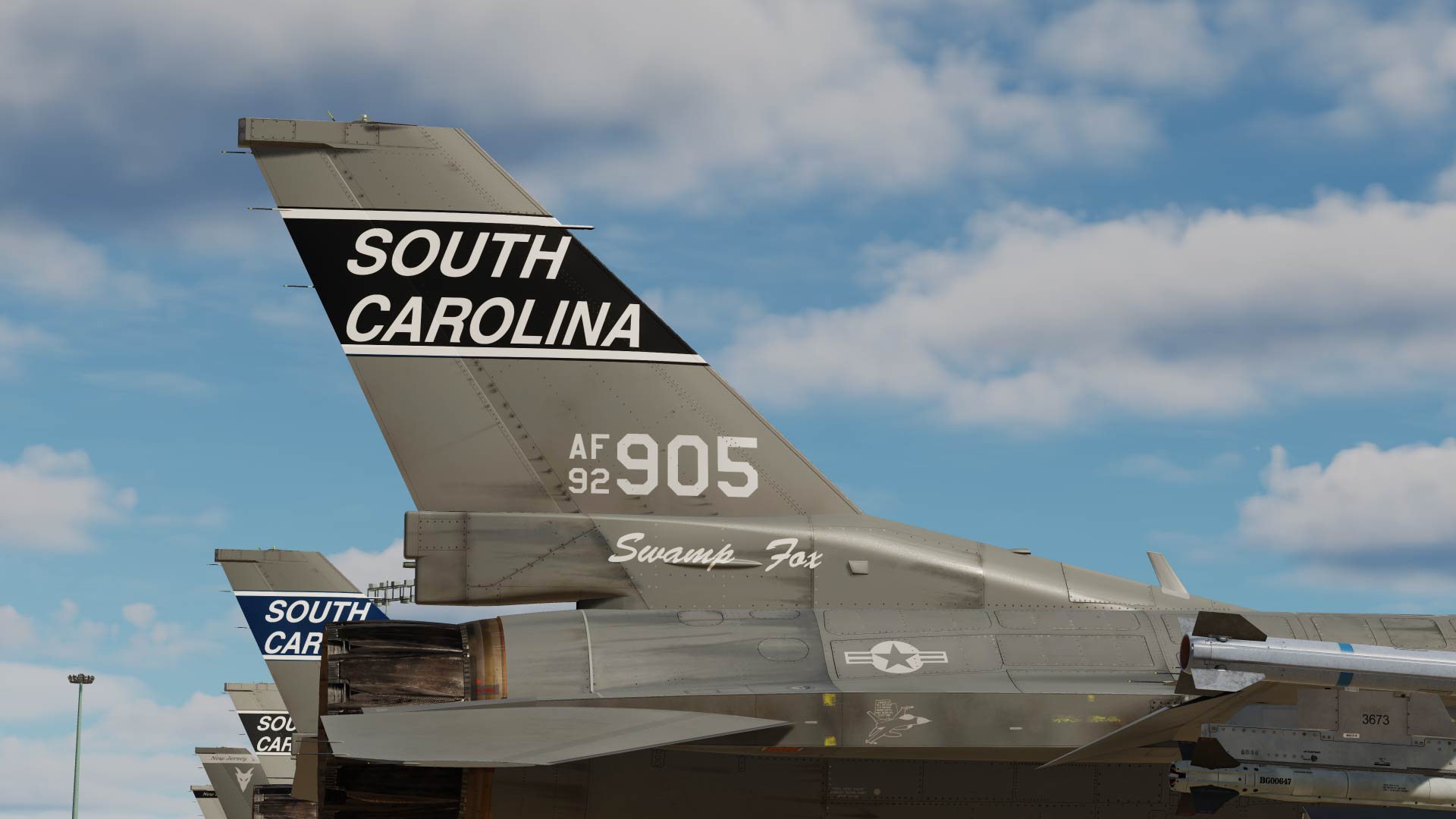 This pack features three incredibly detailed liveries for the F-16 to represent  jets flying for the 157th FS these days:  93-551, 92-905,93-545 in their HaveGlass Schemes.