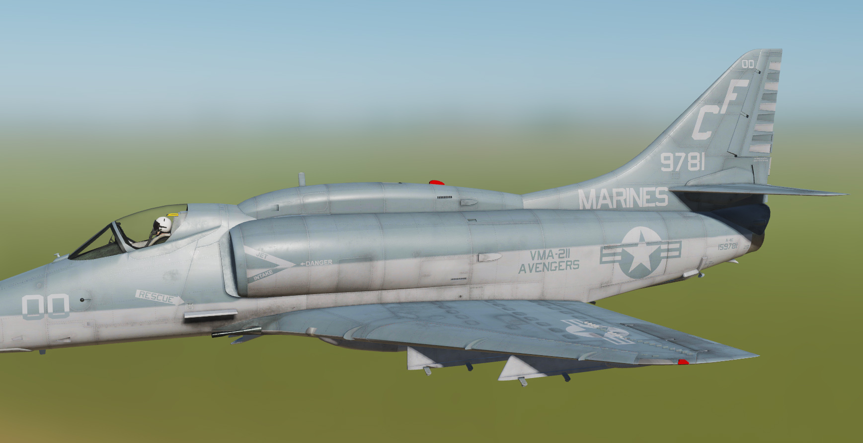 A-4E: US Marine Corps Attack Squadron 211 (VMA-211) "Wake Island Avengers" for DCS World with the A-4E Community Mod installed.