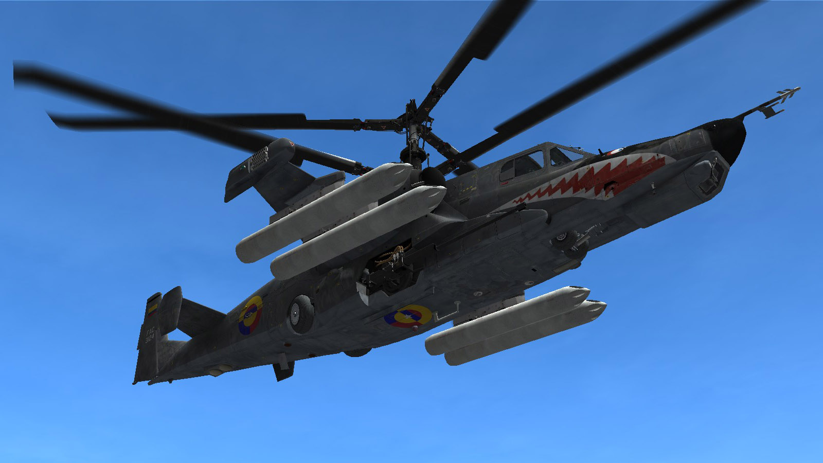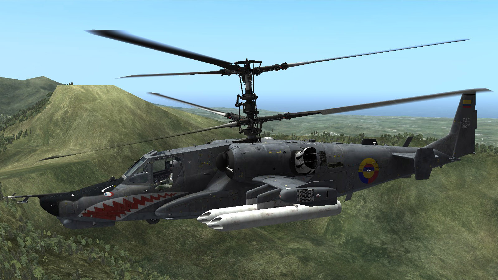 This is a fictional skin for the Fuerza Aérea Colombiana Composite helicopter squadron using the current FAC grey paint scheme used for the Super Tucano.  This is #3124 with a "shark mouth" on the nose.  Nationalities are USA and Spain.