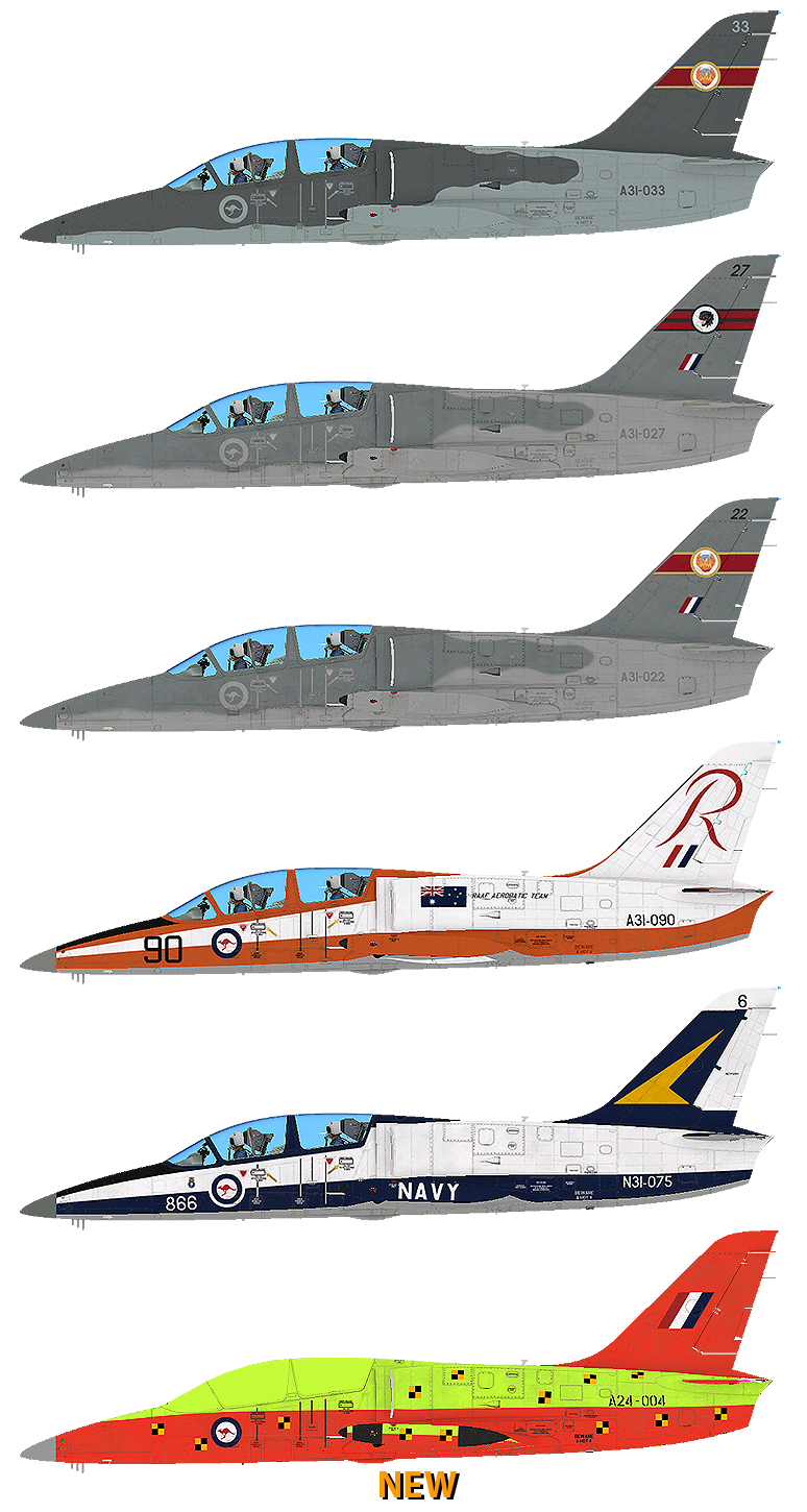 The RAAF MB-339A Pack includes 12 individual paint schemes heavily inspired by the MB-326H in RAAF service. These schemes imitate aircraft from the 1980s to 1990s period. The RAAF operated the rather similar predecessor to the MB-339A, the MB-326H for many years from 1967 to 2001, making this pack semi-fictional.