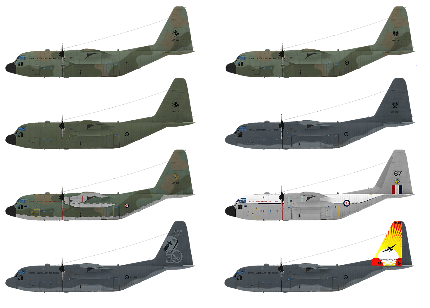 The RAAF C-130H Pack includes 8 individual paint schemes representing real airframes that served between 1978 to 2012. The aircraft included were operated by 36 Sqn & 37 Sqn, flying from RAAF Base Richmond.