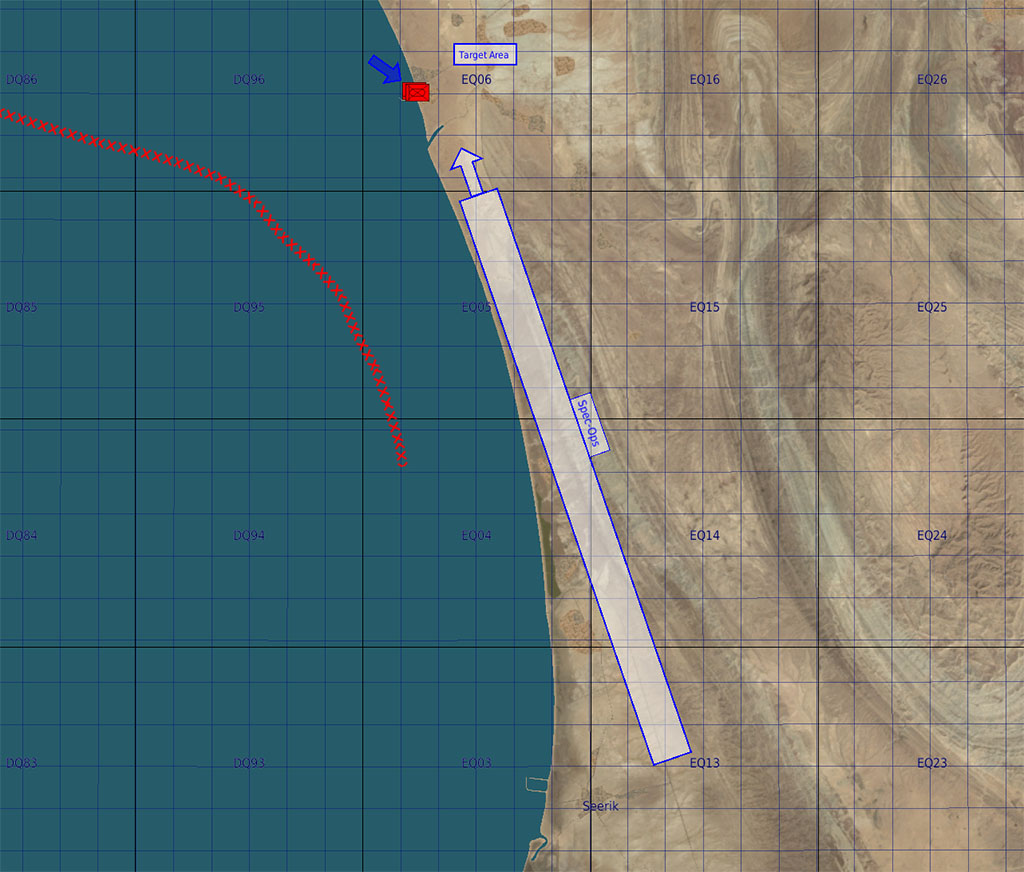 An Iranian submarine had to dock for technical reasons at a small port north of the Gulf of Oman. In recent days, this SSK-class submarine has been used to sink some oil ships trying to cross the gulf under Iranian threat. The coalition has decided to intervene as soon as possible. For this reason, a team of special forces codenamed "Dolphine" is sent to sabotage the submarine. Obviously the target area is manned by infantry with light and armored vehicles and the special team needs our support to clean the area before their arrival. Once all the enemy vehicles on the spot have been destroyed, via the radio menu (F10) you can call "Dolphine" and wait for their arrival on the spot and they will complete the job. In order to ensure safety in the skies during the mission, an F-15E patrol, codenamed "Enfield" will provide you with cover. Be very careful, we are acting in a hostile area and threats could be around the corner.