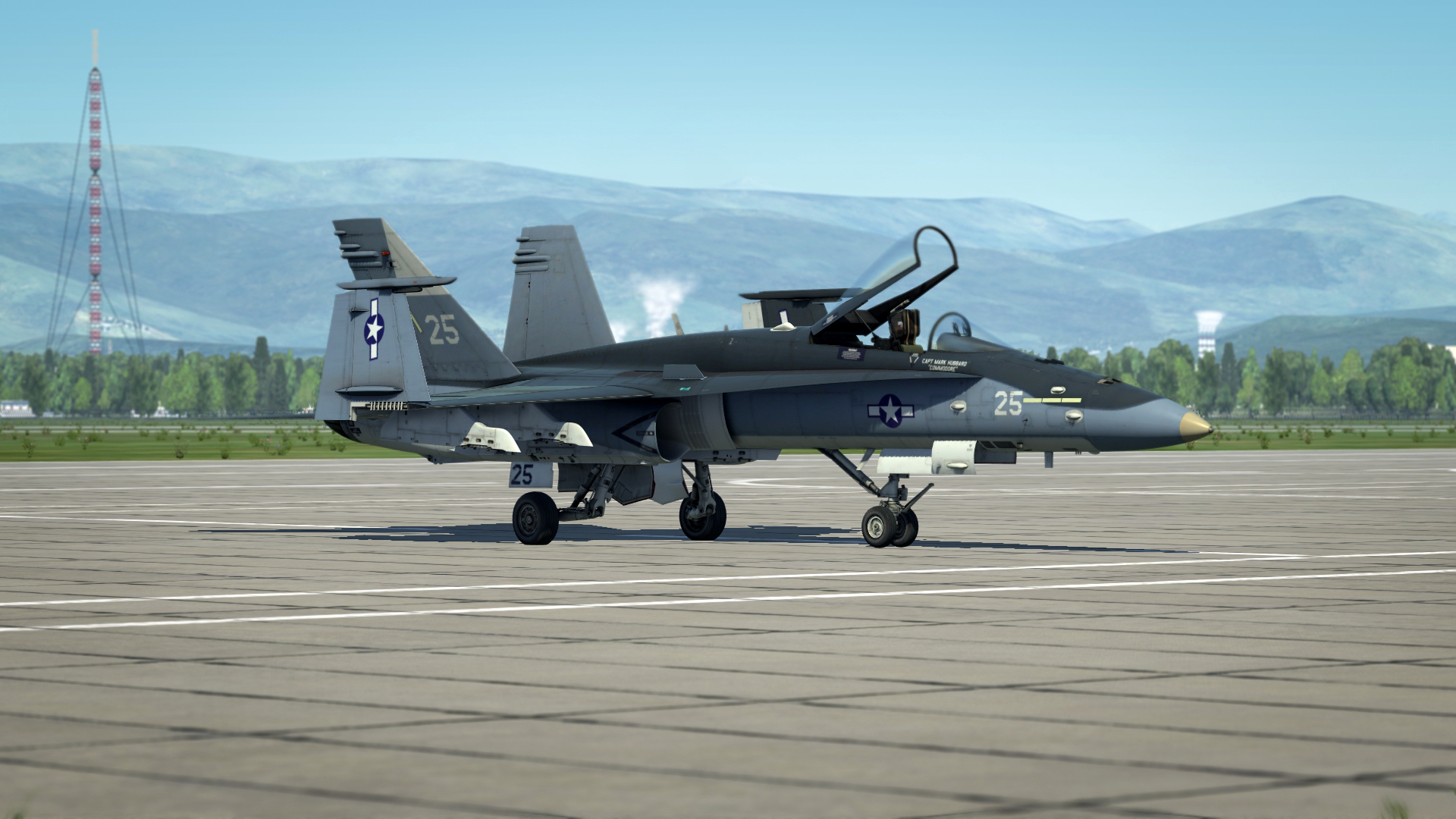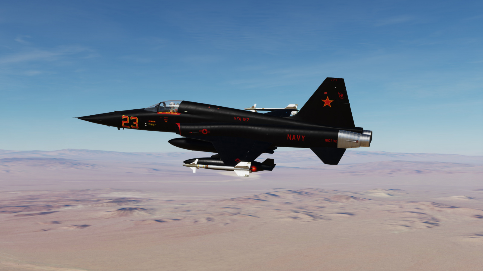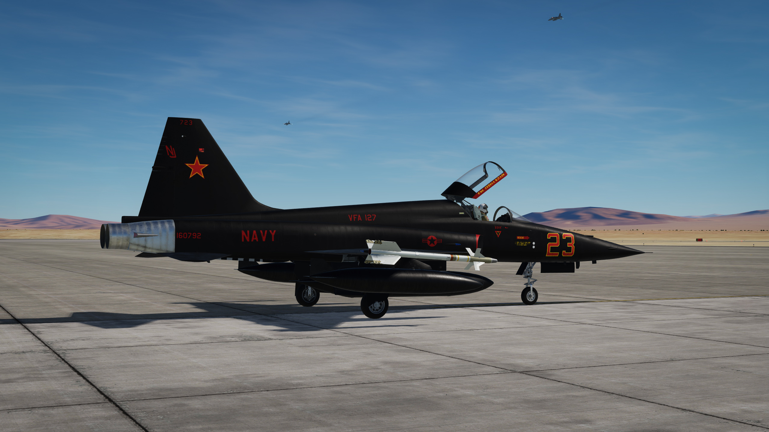 (VFA-127_23: To display #23 or other number on the nose of the aircraft, please go through the ME or rearm options in the simulation)