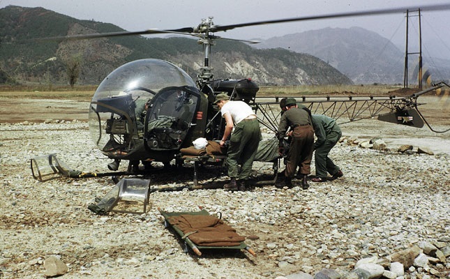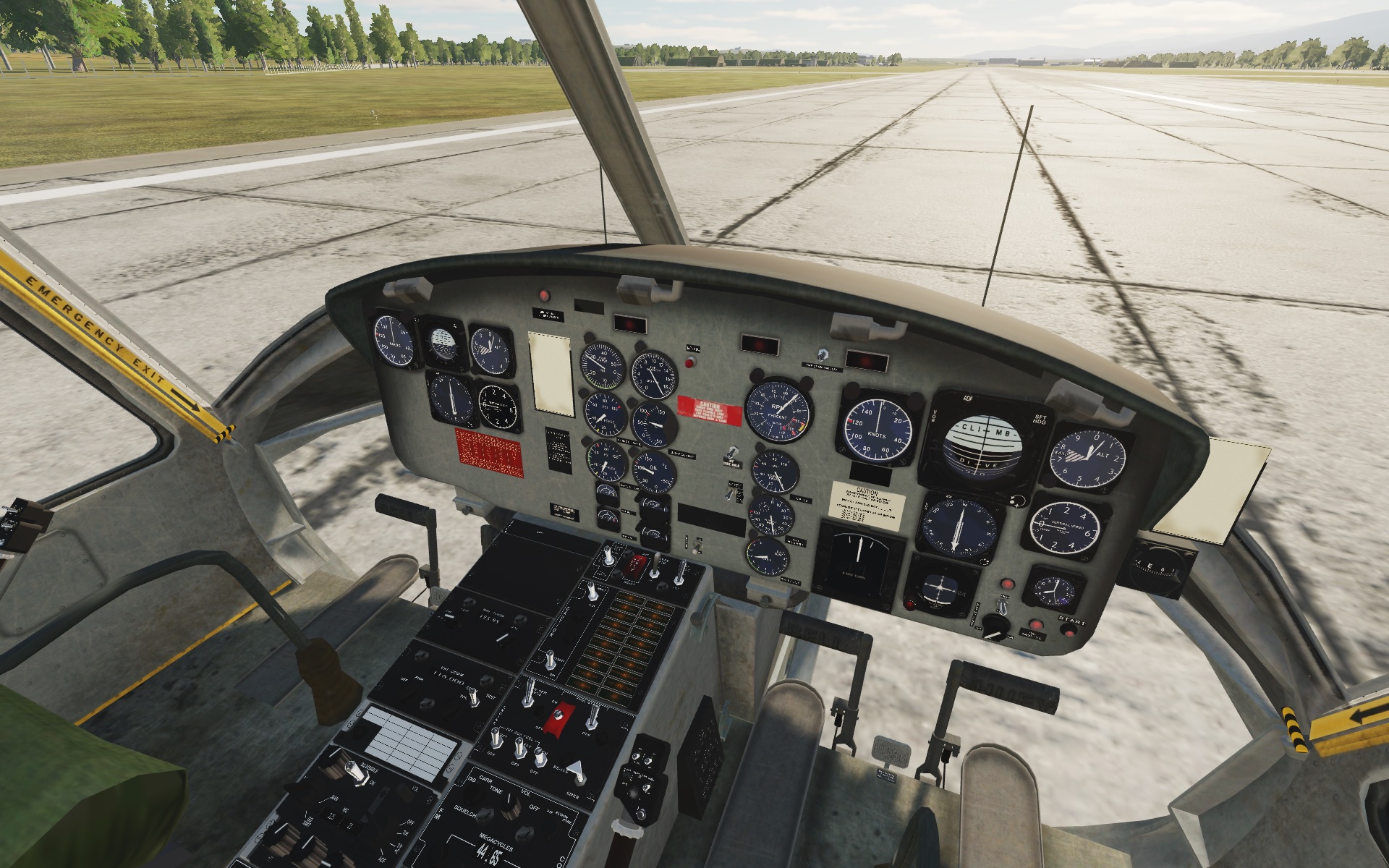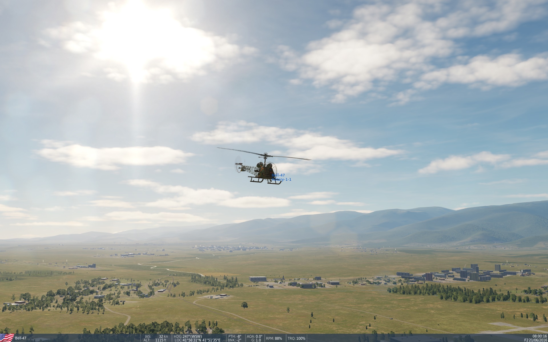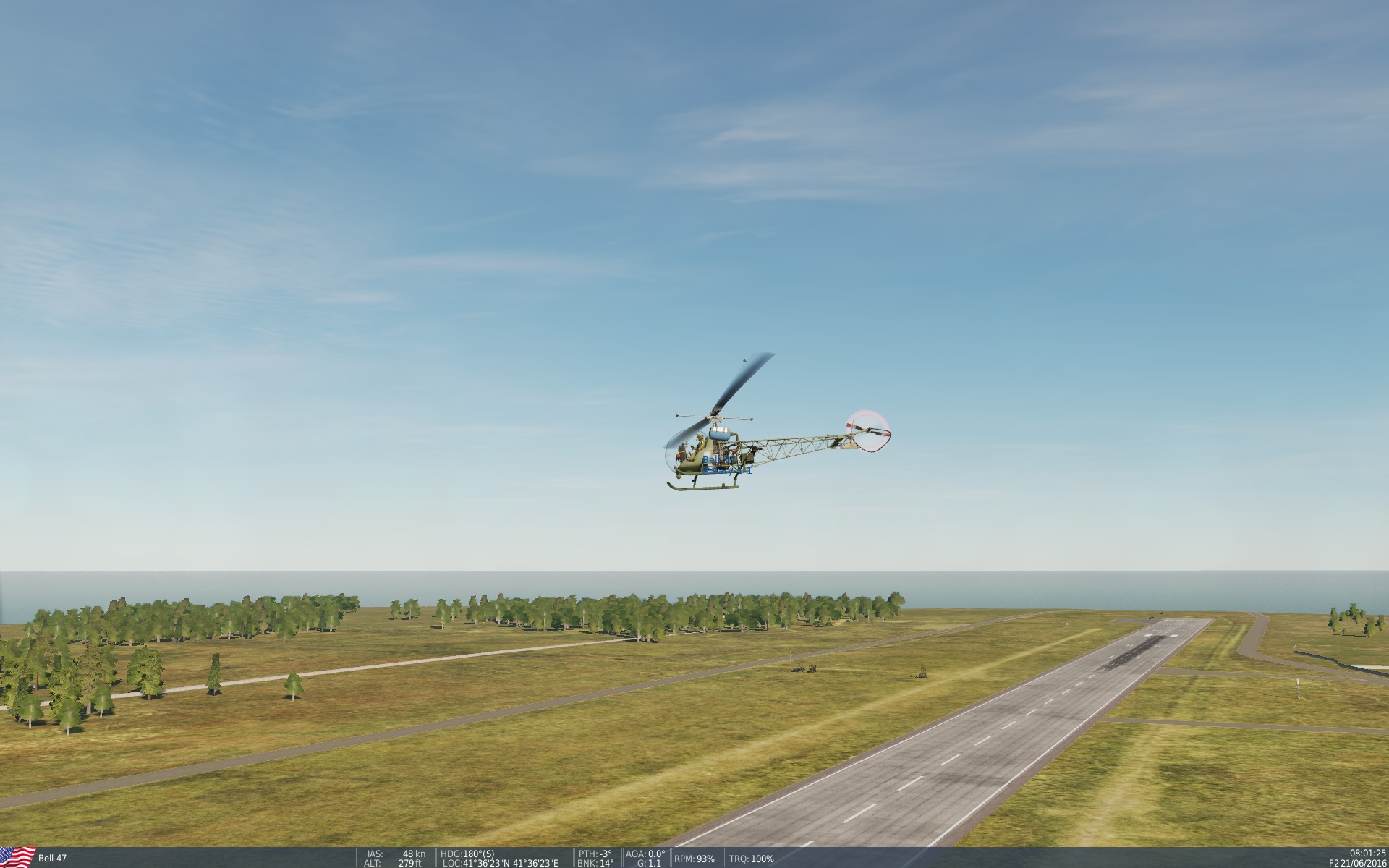 Bell 47 hellicopter. ....... think *M*A*S*H*......... the helicopter with the stretchers landing in Korean war?.... that's the one! You can now take control.