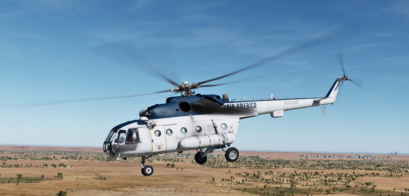 This skin uses "UH-1H (bell-205) Civil Pilot" mod by RUS -included in the files.