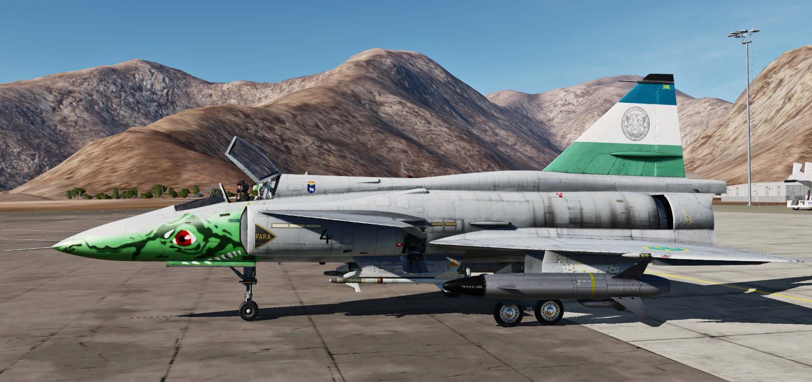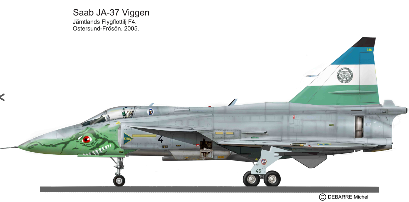 This SAAB JA-37 Viggen was painted on Frösön AB on 2004, the Monster (Dragon named "Storsjöodjuret" -Great lake monster) is the badge of the Jämtland Air Force Wing (the F 4).