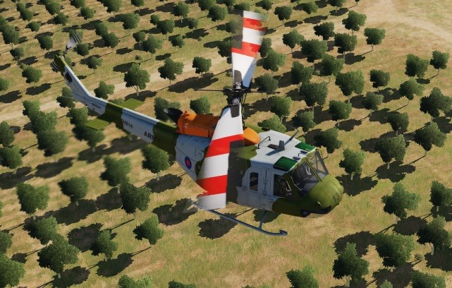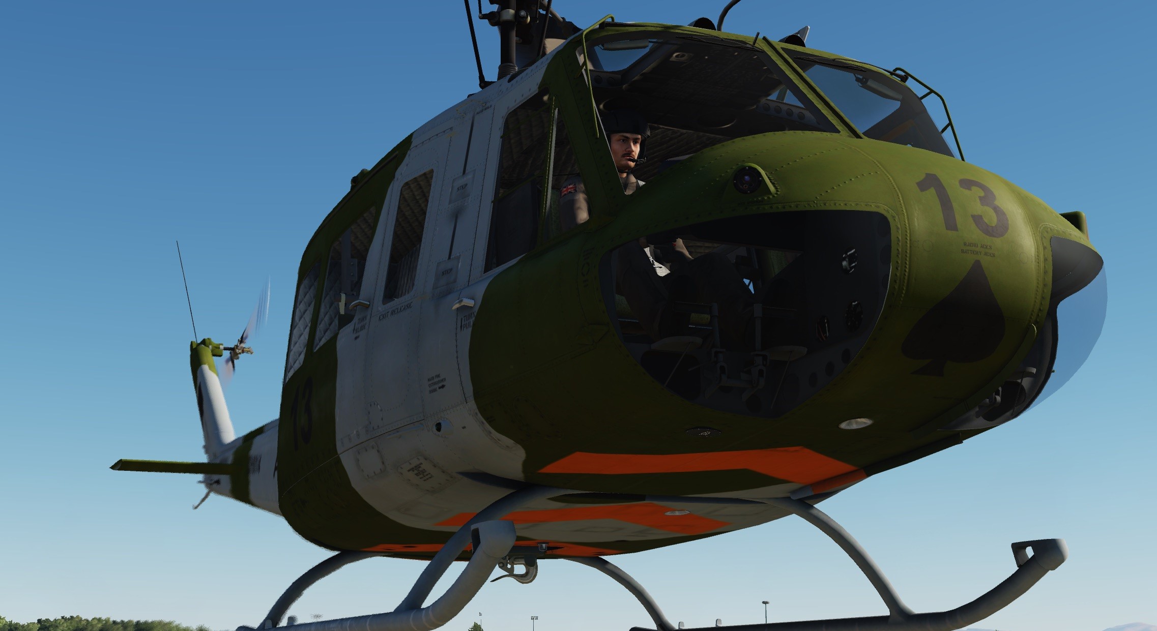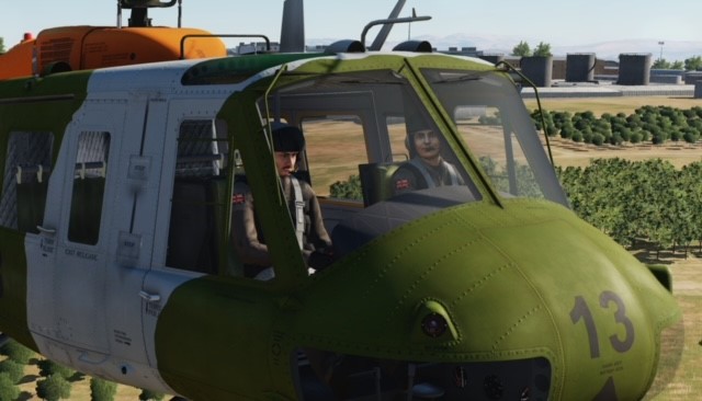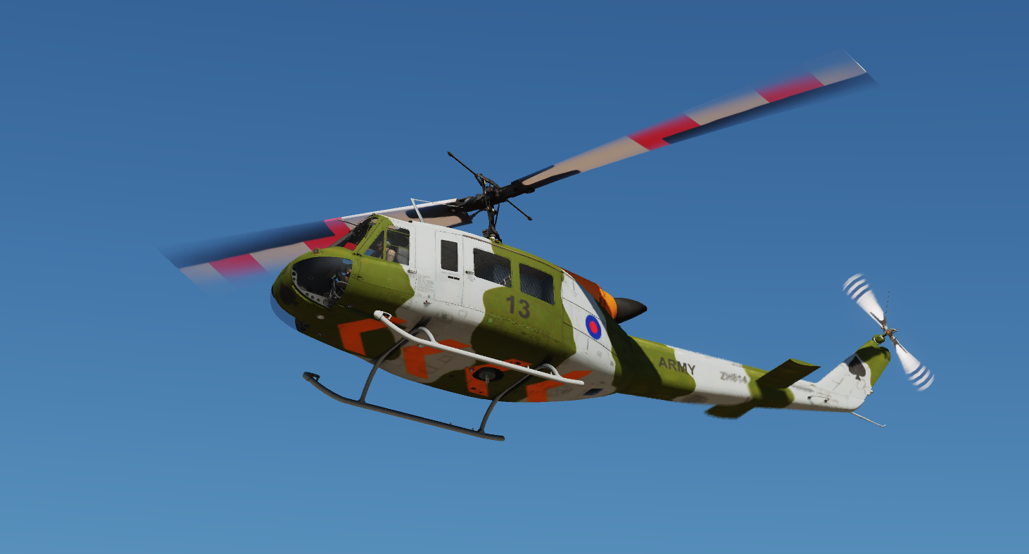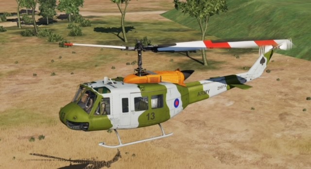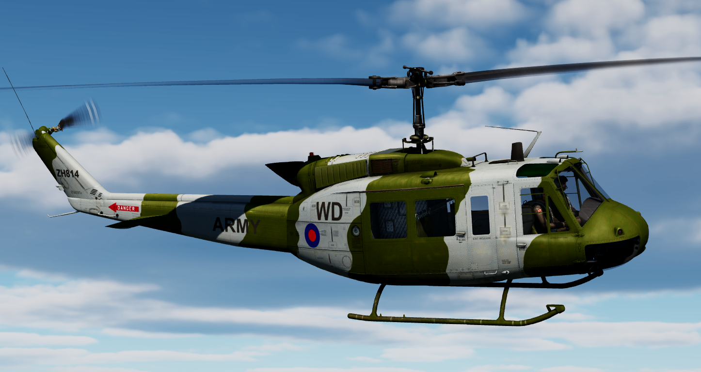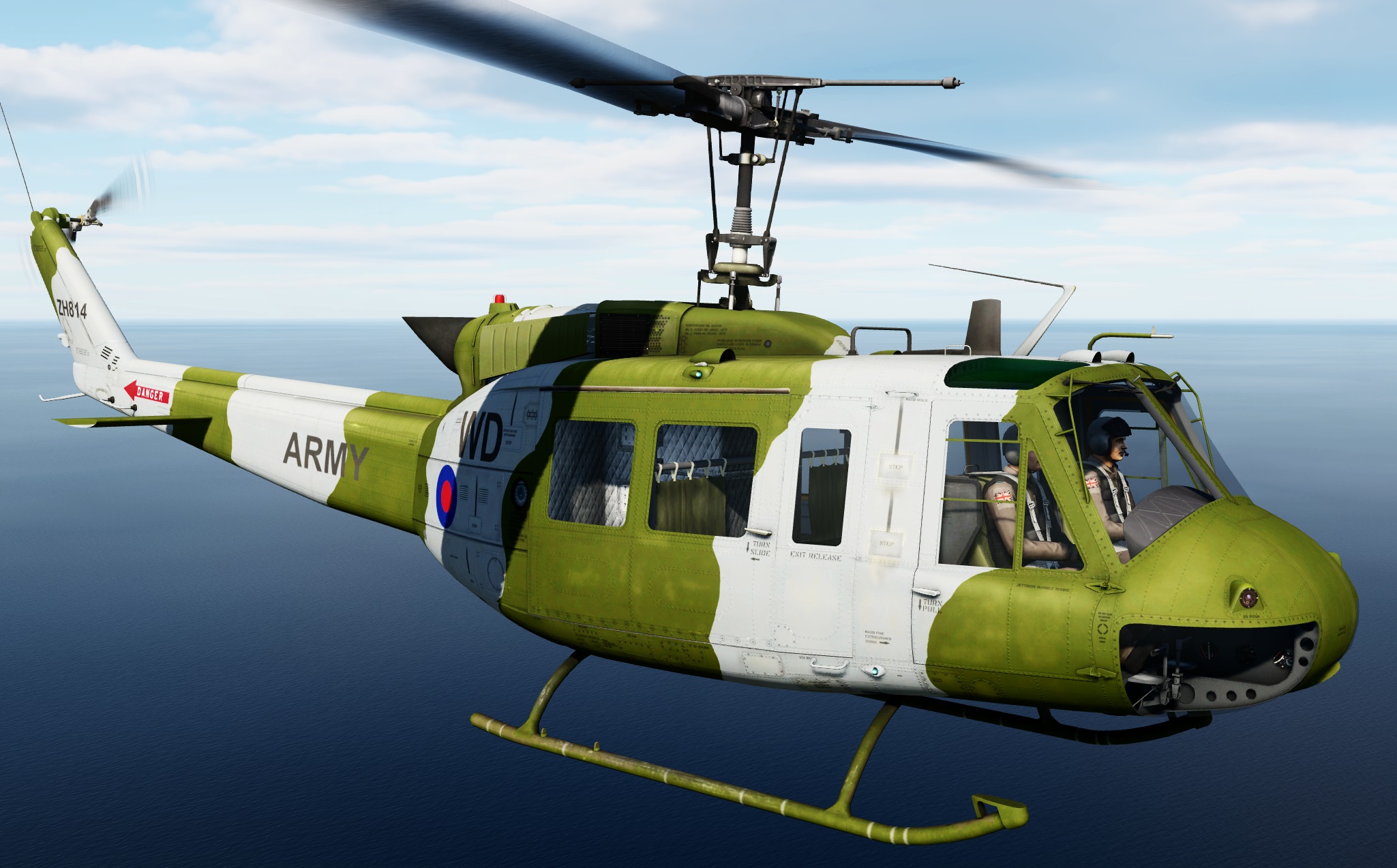 Here is Uh-1H Huey Skin wearing a Pea Dot Camouflage scheme with UK Army Pilots.