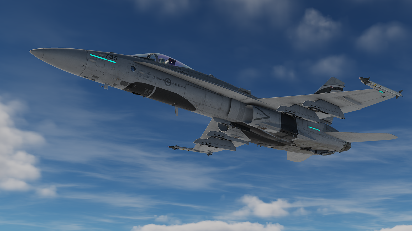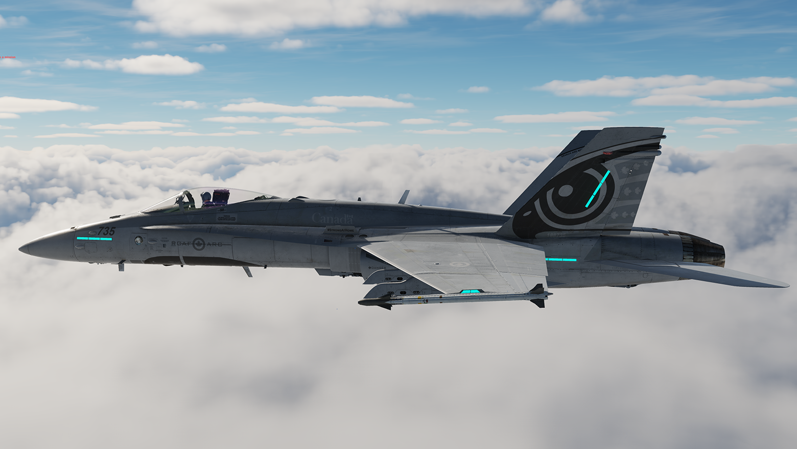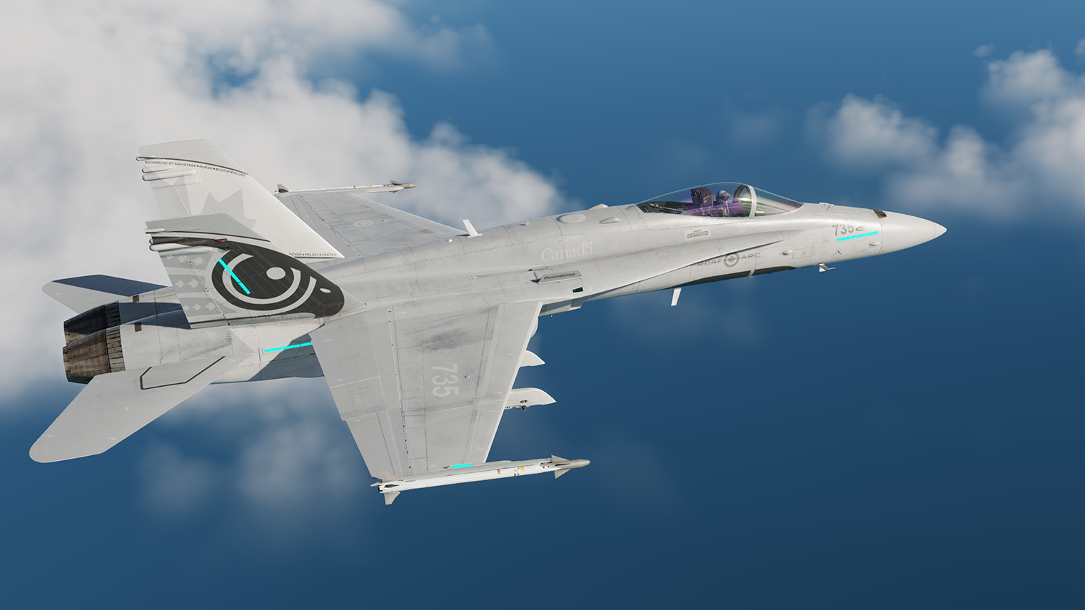 The 2021 CF-18 Demo Jet is a thing of beauty. This skin has been designed using photographs to create dirt and markings according to the real jet.