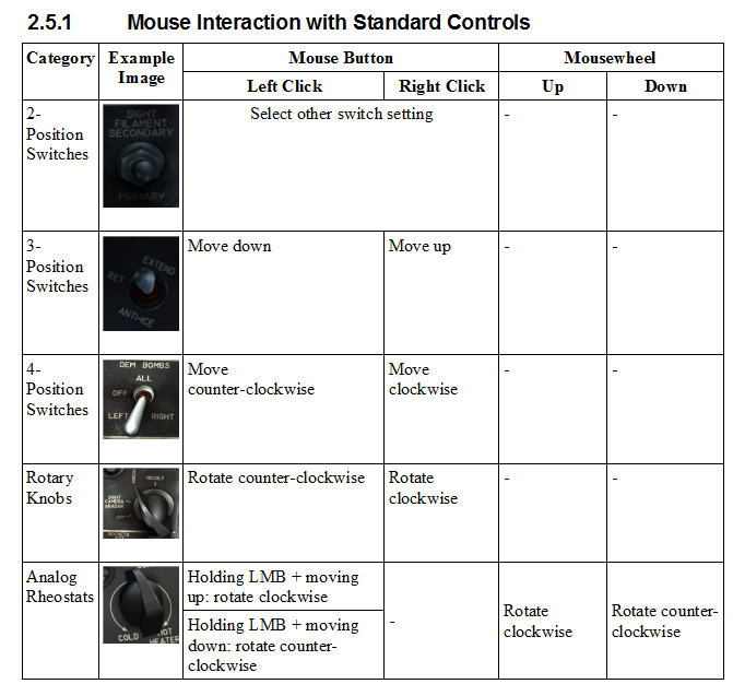 Simple replacement for the clickabledata.lua file, which fixes the wrong right/left mouse click behaviour of some of the knobs and switches in the cockpit (see the DCS standard in the image of this mod).<br />