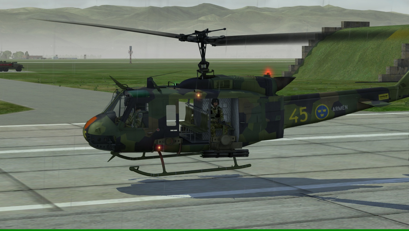 This is much much harder than with the Mi-8. Simply because the Huey is slower and doesn't have the same grunt as the Mi-8.