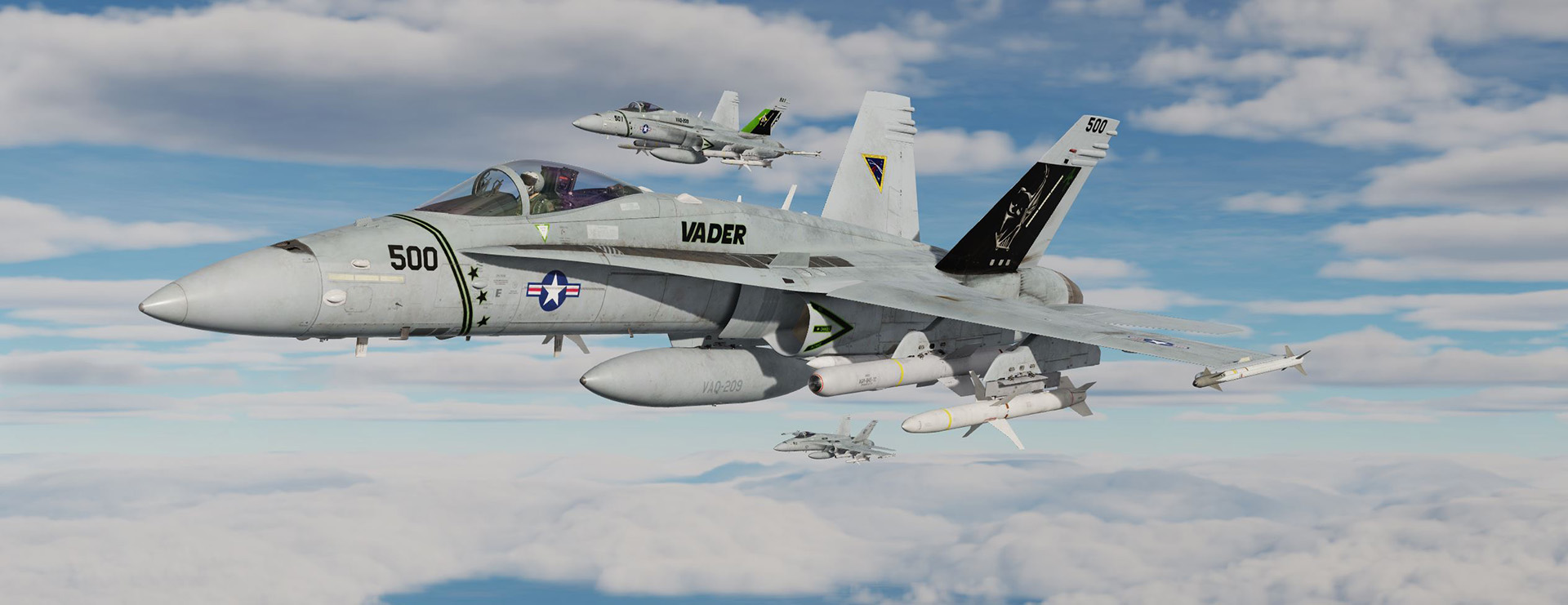VAQ-209 Star Warriors skin for the F/A-18C. This contains 3 skins, 2 hi-visibility and 1 low-visibility.