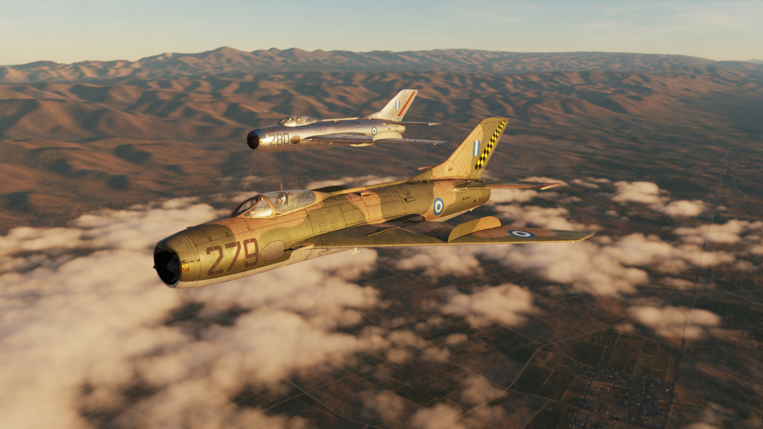 A set of two fictional Hellenic trainers inspired by the T-6 Texan II and the T-41D Mescalero