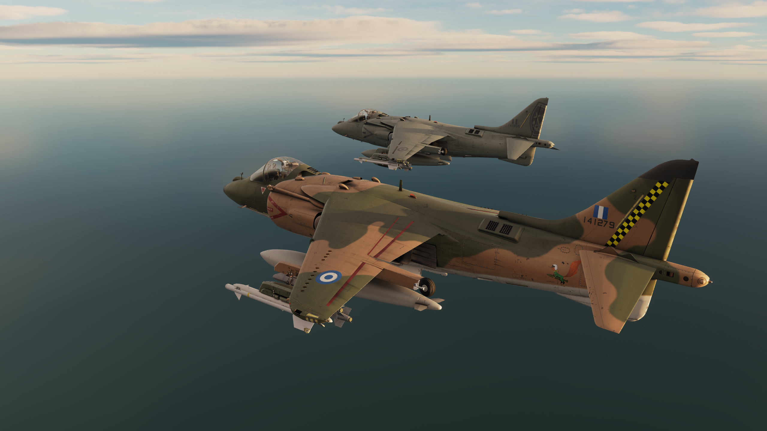 A set of two fictional Hellenic Harriers based on historic liveries of alternate airframes.