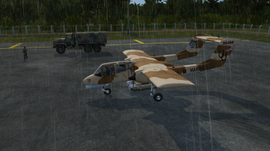 Right-wing extremist armed militants have taken over a secret military complex northwest of your airbase.  Before the communication lines went dead, it was reported that a dozen vehicles and as many militants have taken over and have spread out over the complex. A two-ship of OV-10A (you are wingman) aircraft is assigned to handle the situation until additional help arrives.
