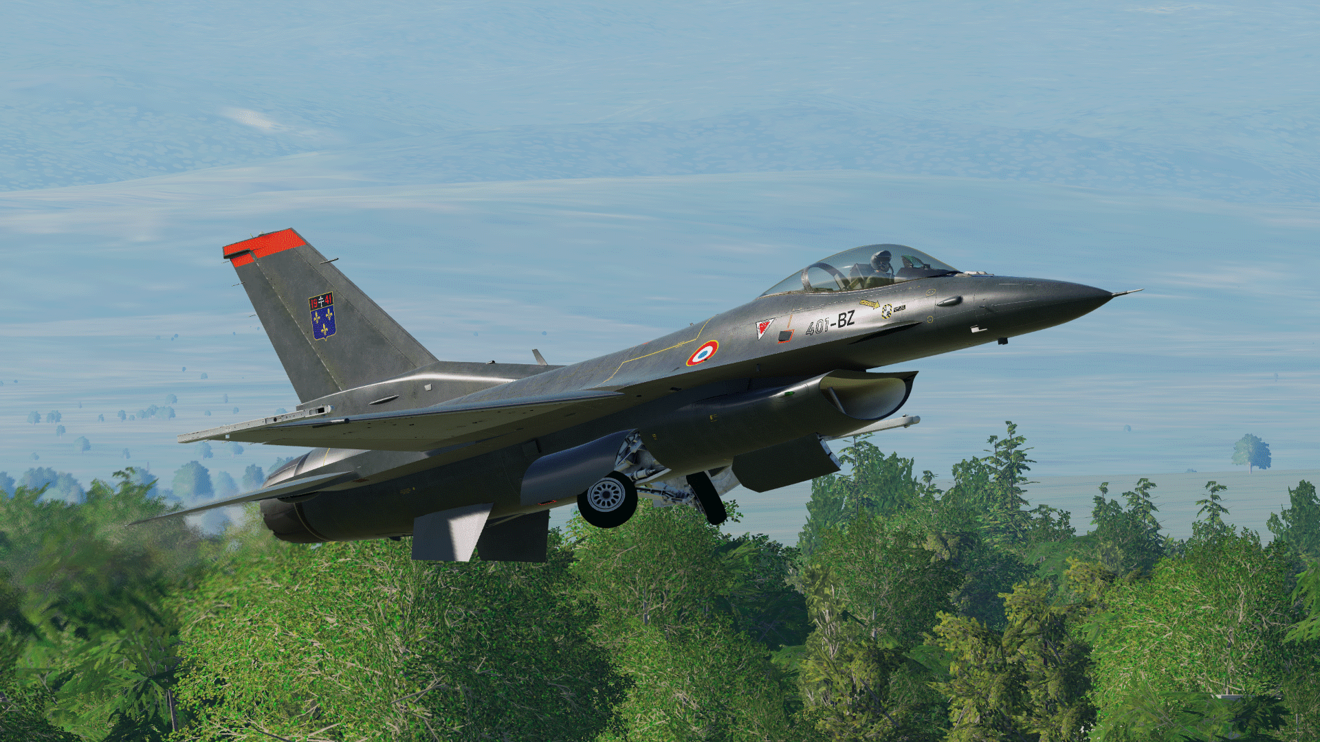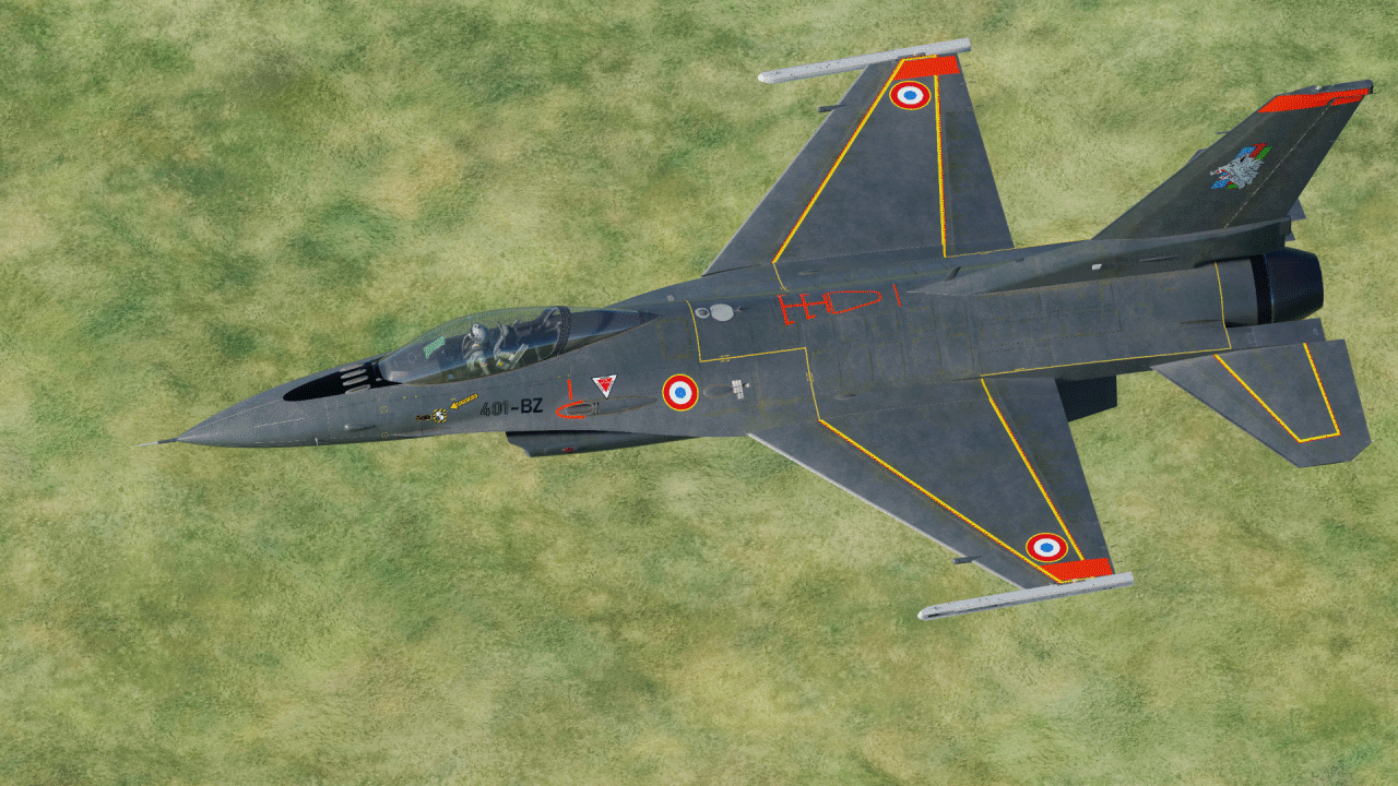 Cette livrée est une version fictive d'un F-16C français, jouant avec les codes du feu Alphajet qui opérait sur la Base Aérienne 705 Tours afin d'appdrendre le pilotage de jets au nouveaux pilotes.