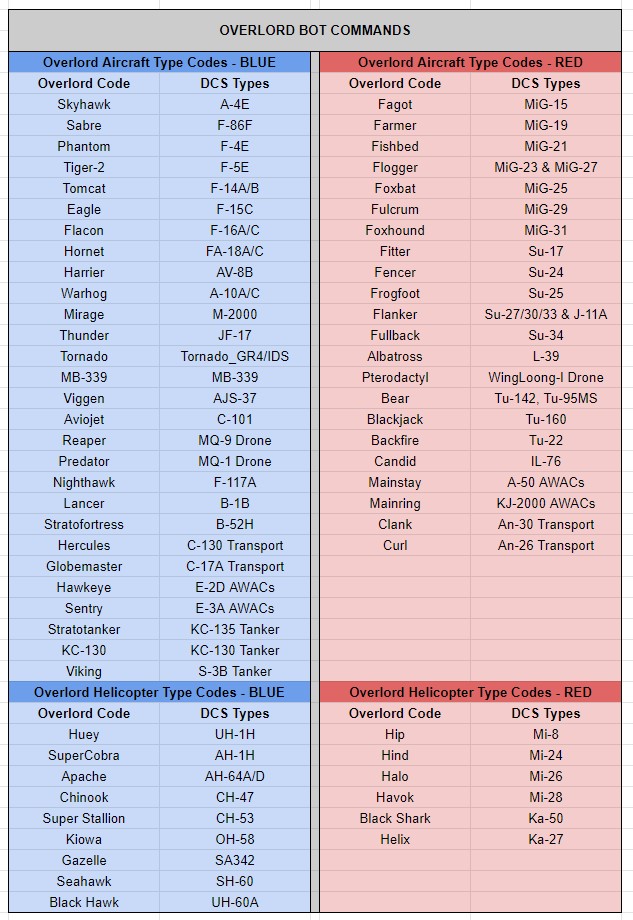Overlord Bot / GCI Kneeboards with Phraseology and Recognised Aircraft Types