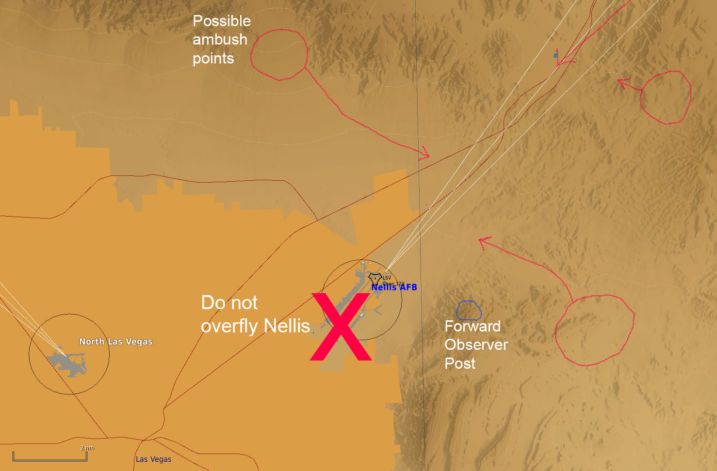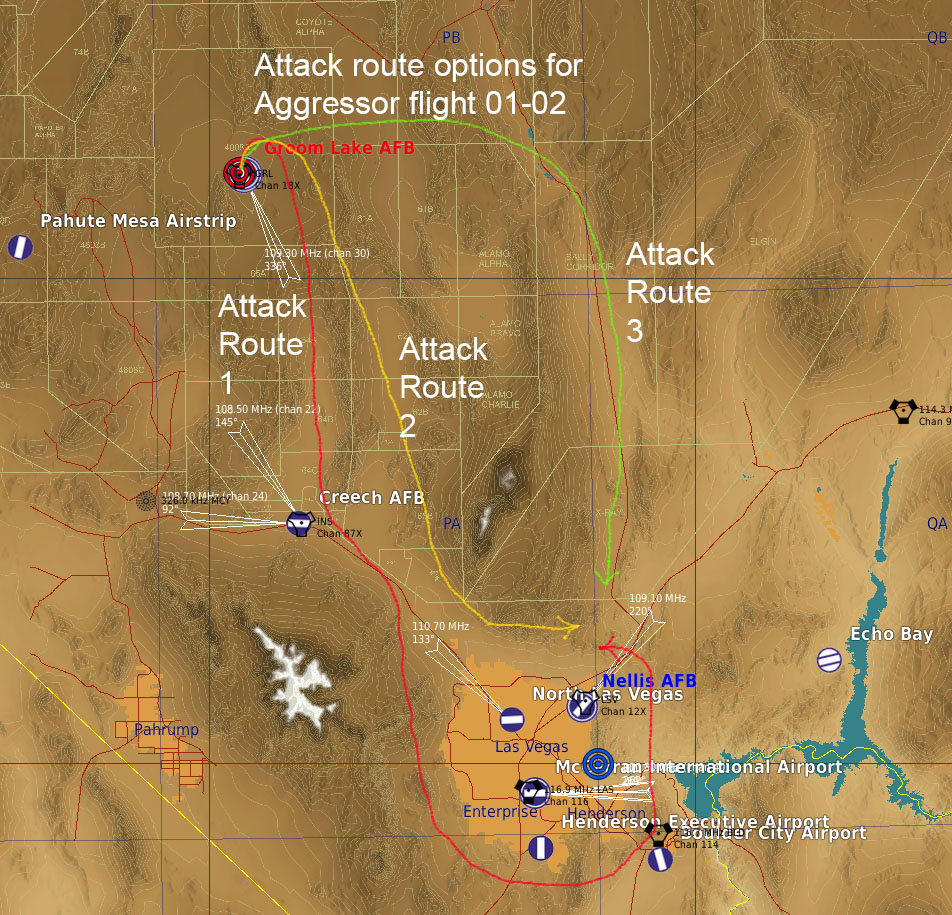 Fly as a RED Aggressor out of Groom Lake to intercept BLUE bombers in an intense, double-hop mission at dawn. Fly full real, intermediate-level difficulty, 75-90 mins.