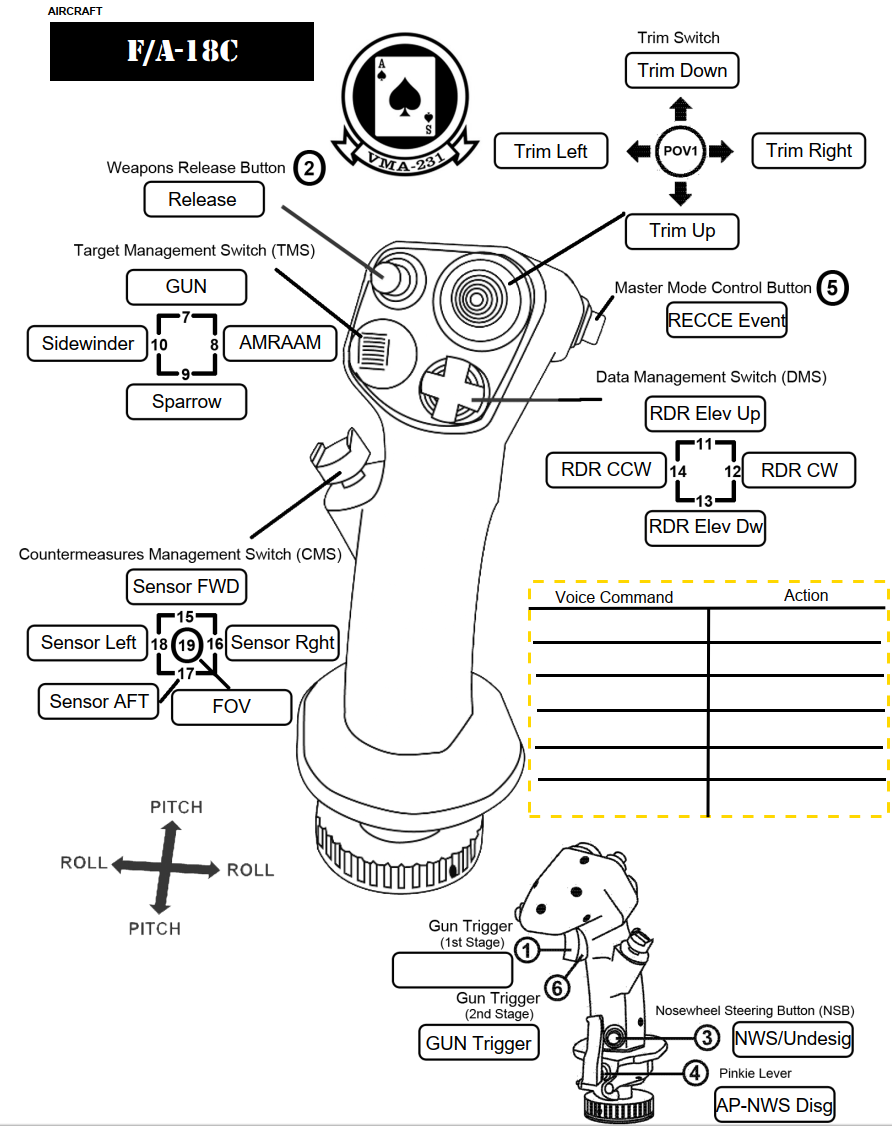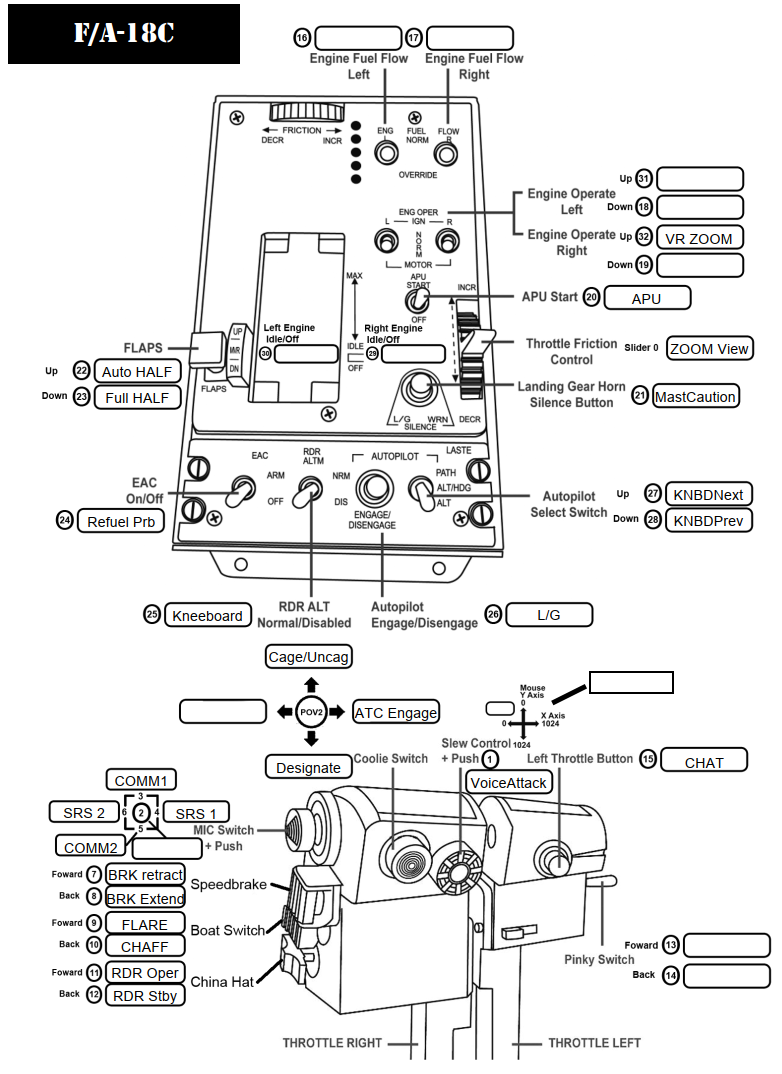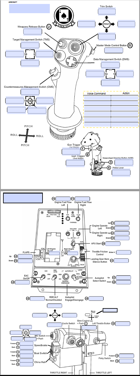 TM Warthog HOTAS fillable PDF form and graphic for visually recording your aircraft controls.