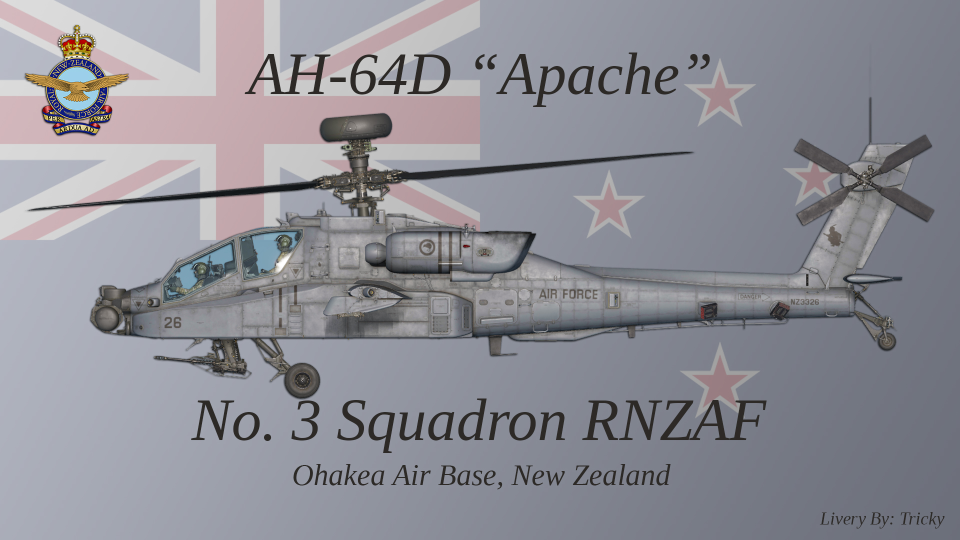 A fictional representation of an AH-64D in Royal New Zealand Air Force service.