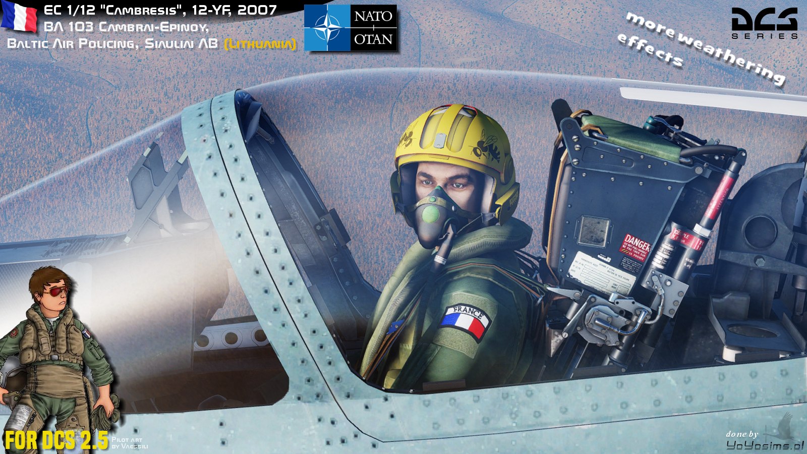btw. for shiny/glossy helmet (and nice scratches on canopy) download and use this MOD: M2000 Canopy scratches+Pilot body, Helmet and Hud PBR textures (JSGME compatible), You can download it from this link: https://www.digitalcombatsimulator.com/en/files/3180749/?sphrase_id=11133952 (and Thank You "sushy73" for files from ED Forum!).