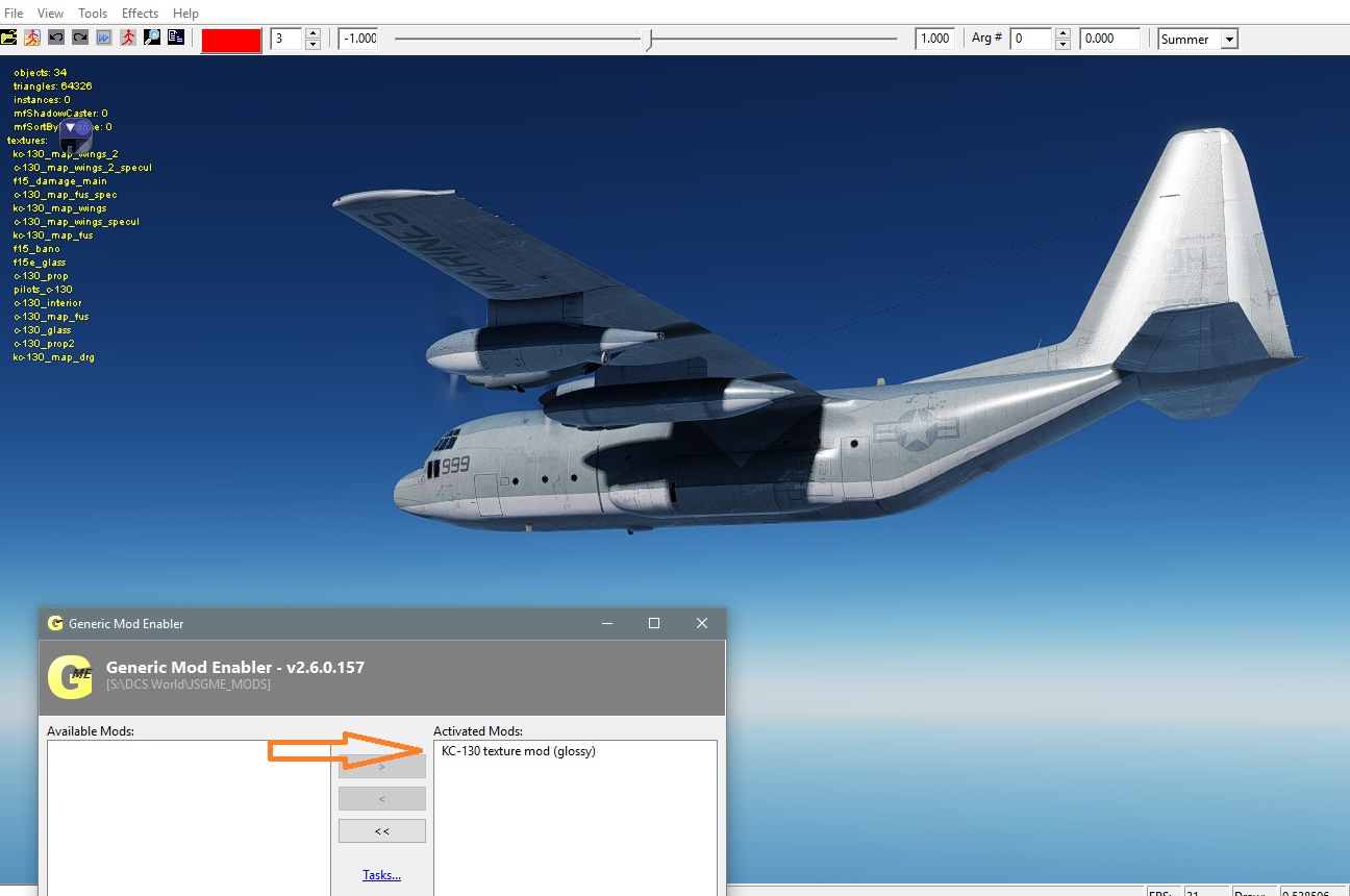 - the new texture of pilot (helmet) + shiny effects (helmet +_ visor),