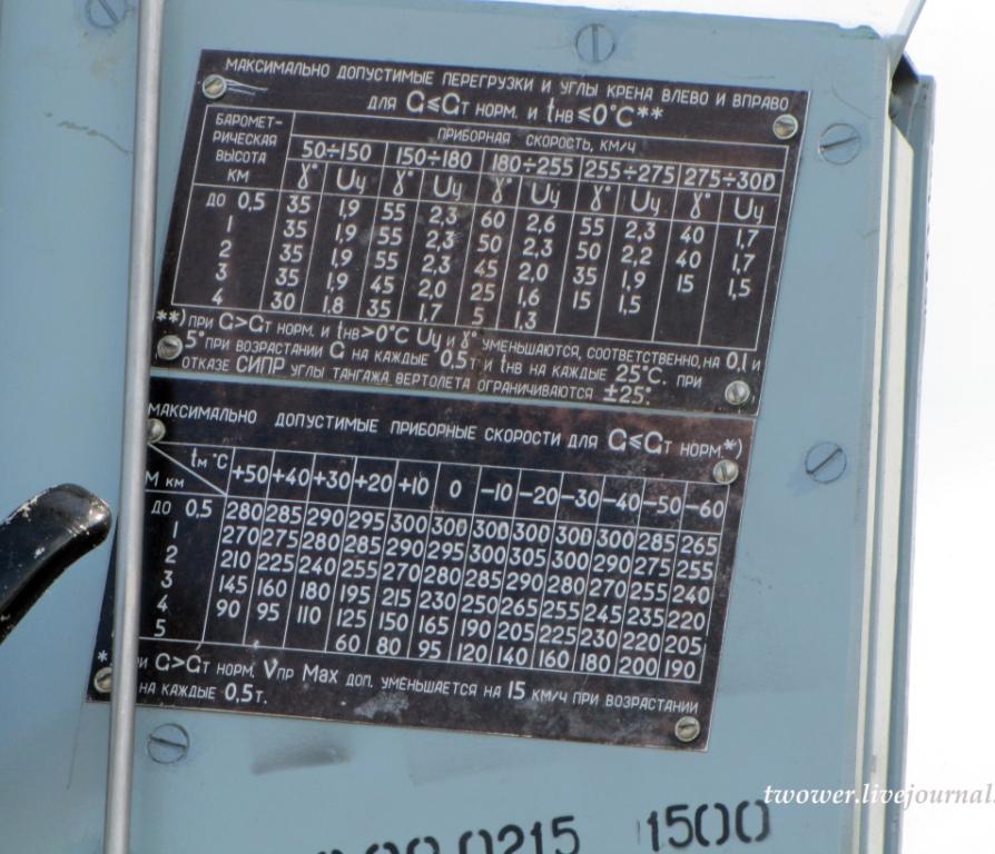 таблица с реального вертолета КА-50, бортовой номер 23