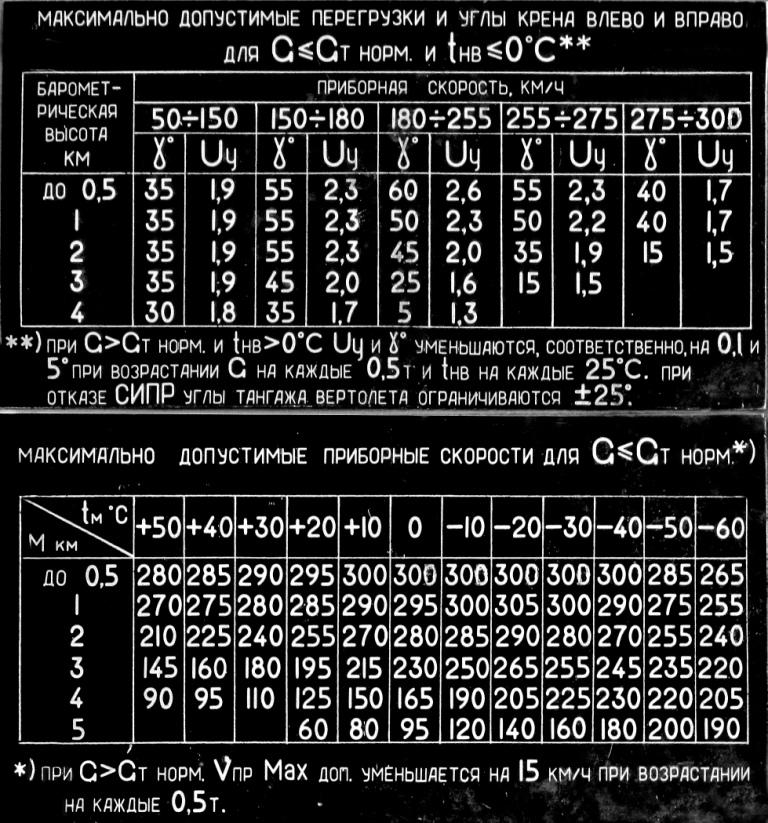 максимально допустимые перегрузки, углы крена, приборные скорости для КА-50