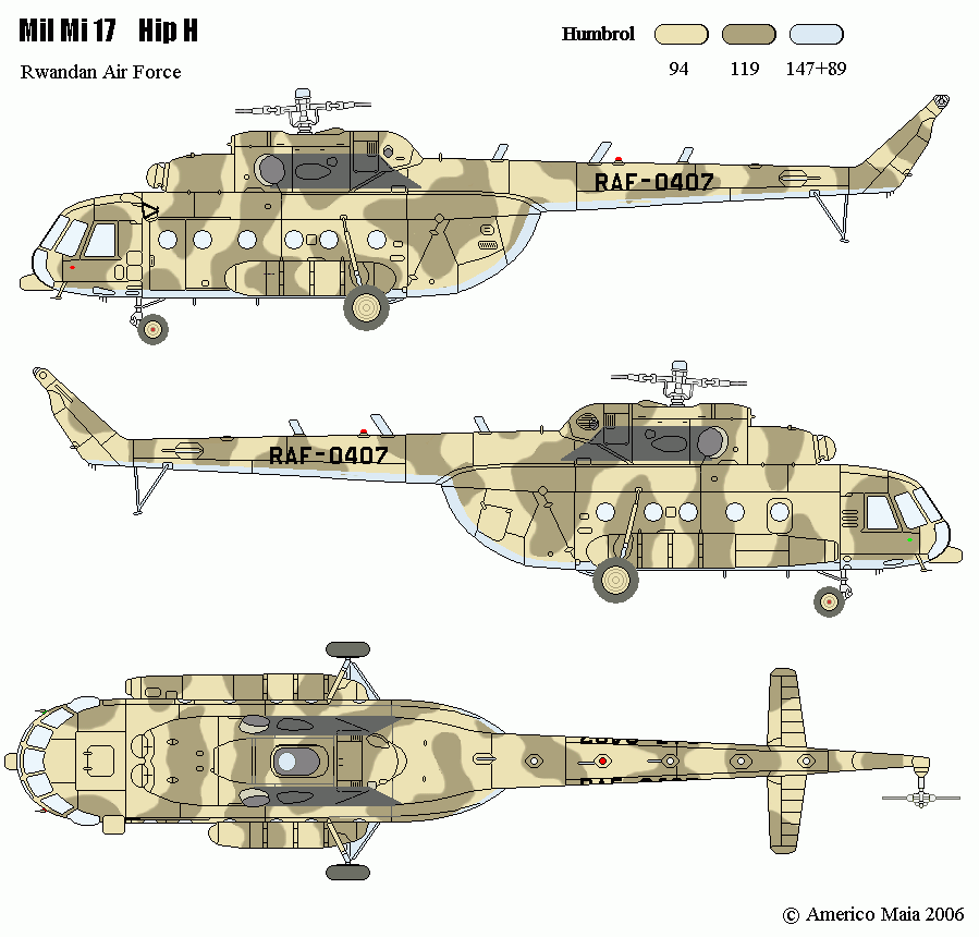 Rwandan Air Force livery. Colours are exact. Registration font not exact. No dynamic registration.